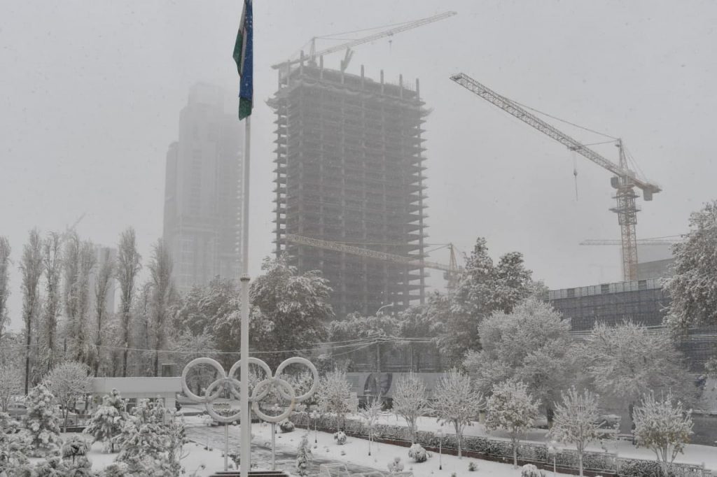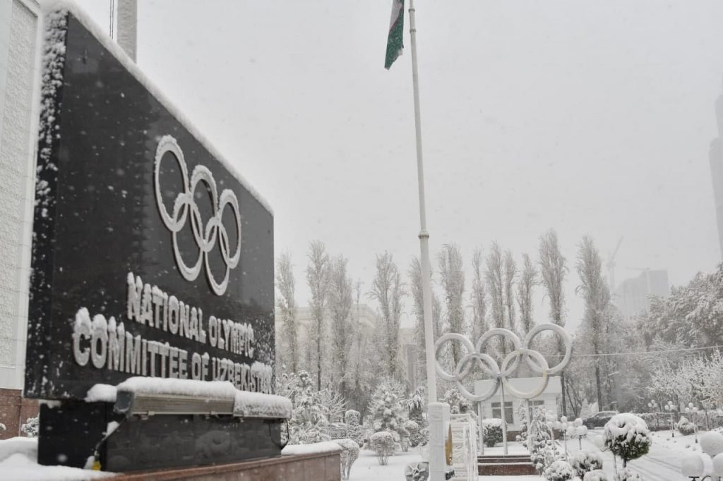The snow that fell in the capital today especially decorated the building of the NOC of Uzbekistan. The press service of the Committee shares photos that reflect all the beauty of nature!