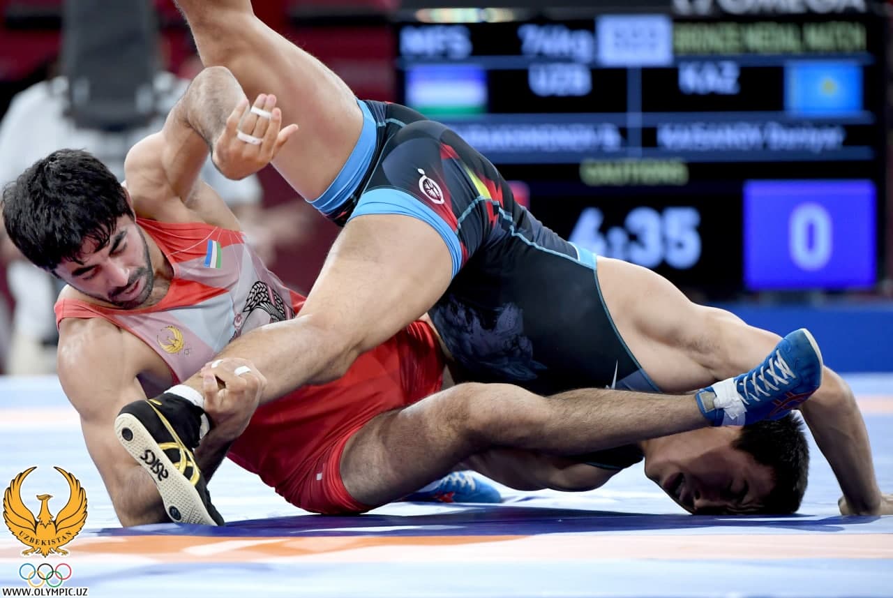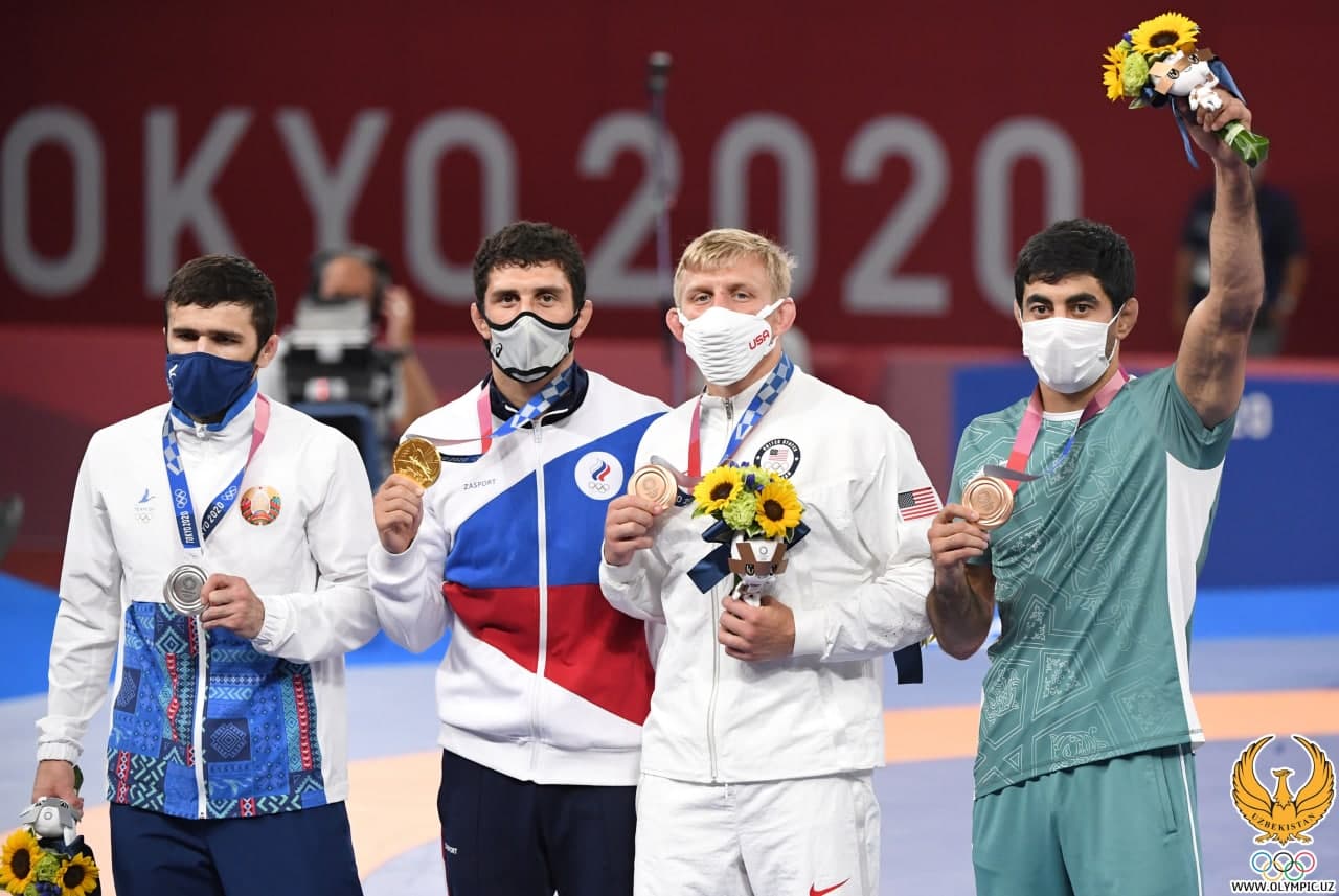 A few minutes ago, our freestyle wrestler Bekzod Abdurakhmanov won in the fight for bronze and added another medal to the piggy bank of the delegation of Uzbekistan. Now he has medals from all the competitions in which he took part. We present to your attention photos from the victorious battle, as well as the Abdurakhmanov award ceremony: