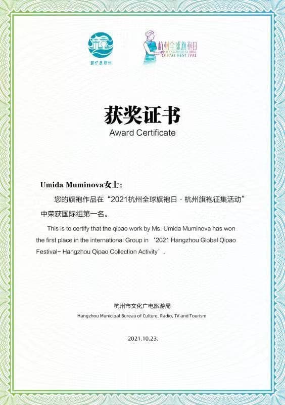 At the invitation of the organizing committee of the Hangzhou 2022 Asian Games, which will be held next year, designers from Uzbekistan took part in the Qi Pao International exhibition. It is noteworthy that our compatriot, who spoke at this event with his projects, took the honorable first place.