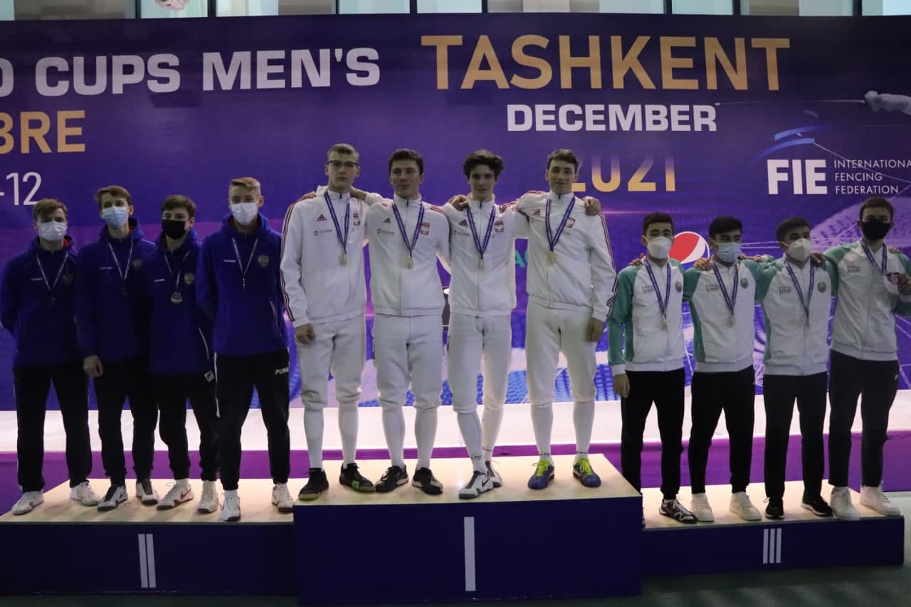 Good news from the World Cup among young people on fencing, which is held in the capital. Today, our rappers climbed to the podium in a team program.