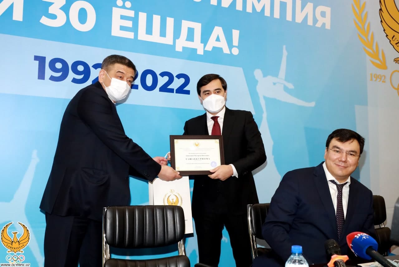 “In the short time the National Olympic Committee of Uzbekistan has brought a cooperation with the International Olympic Committee, the Olympic Council of Asia and a number of international sports federations and organizations to a new level. Realizing that today the effectiveness of sports and recreational processes is linked with the aims of building New Uzbekistan, we must act with iron discipline. Taking this opportunity, in connection with the 30th anniversary of the formation of the National Olympic Committee of Uzbekistan, we express our gratitude to the head of the State and the Government, who provide us with all possible support, creating all the necessary conditions, and personally to the respected President Mr. Shavkat Miromonovich Mirziyoyev, as well as the Ministry of Tourism and Sports, cooperating with us, our veterans and sports federations.", the head of the NOC said.
