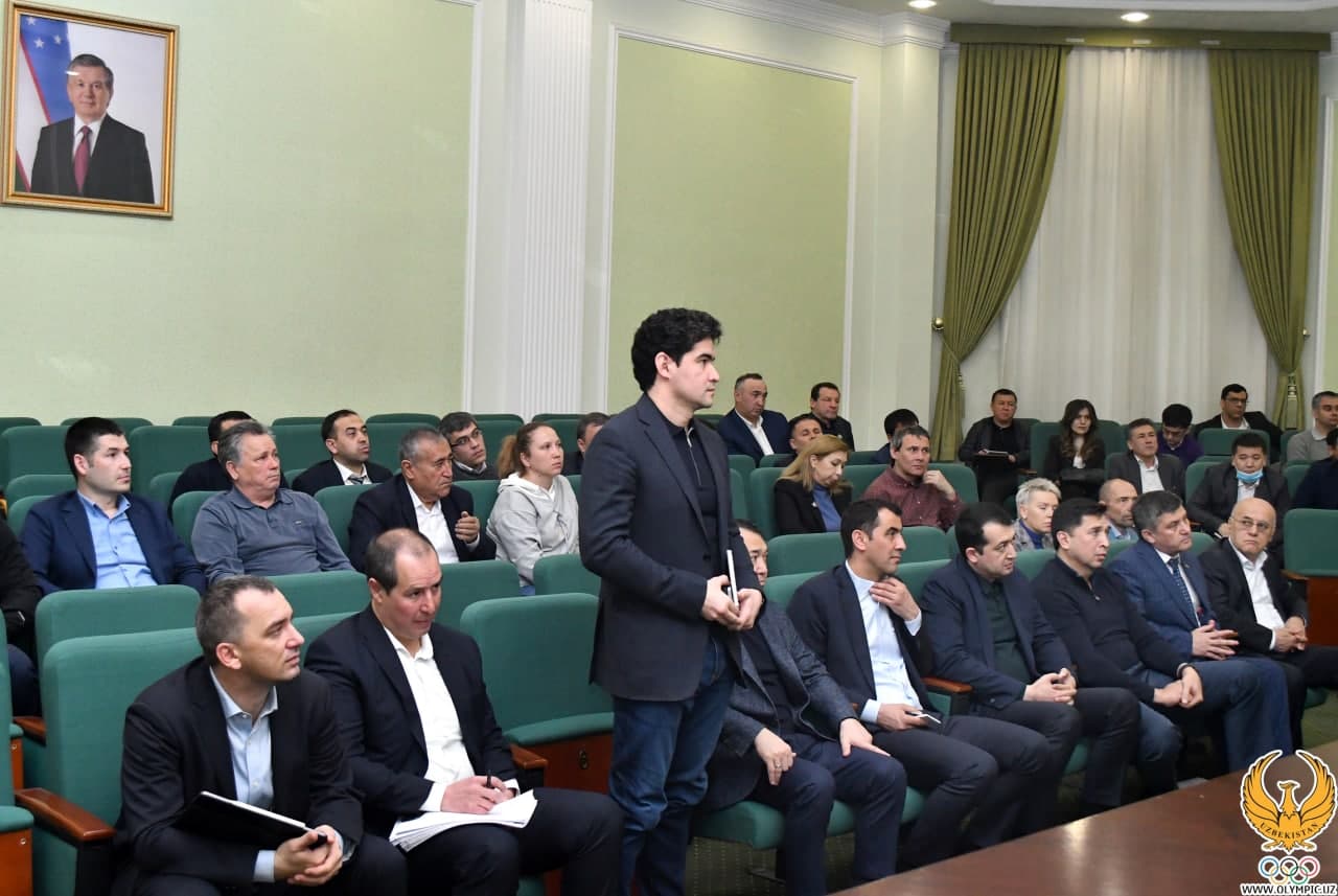 As you know, a few days ago, the Ministry of Sports Development was established by the relevant decree of the President of the Republic of Uzbekistan, its composition was formed. Today, Sports Development Minister Adham Ikramov met with representatives of the NOC leadership, responsible persons of sports Federations and Associations, discussed upcoming plans. The event was held by the Secretary General of the NOC Oybek Kasimov, who once again introduced everyone to Adham Ilkhamovich, who is a well-known personality in the sports field. After that, the Minister of Sports Development made a speech on the agenda.