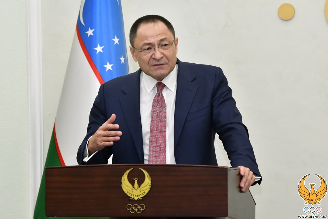 Minister of Sports Development Adham Ikramov held another meeting with specialists of the sphere aimed at bringing the development of physical culture and sports in our country to a new level. The event held at the NOC was held with veterans who have worked for many years for the benefit of the development of Uzbek sports. It was attended by Adham Ikramov and his deputy Shakhrillo Mahmudov, Secretary General of the NOC Oybek Kasimov, Deputy Chairmen of the Committee Azizjon Kamilov and Sherzod Tashmatov, as well as about 100 famous sports veterans headed by the Chairman of the Council of Veterans of Sports of Uzbekistan Bahodir Mahsitov.