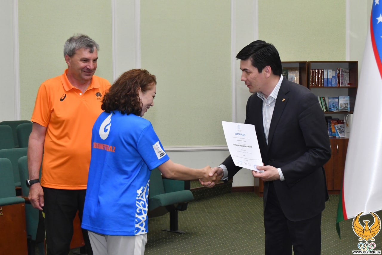 The NOC Secretary General Mr. Oybek Kasimov, Secretary General of the Athletics Federation of Uzbekistan Mr. Kamoliddin Ruzimukhamedov and others took part in the closing ceremony of the course, held at the NOC of Uzbekistan. Mr. Oybek Kasimov emphasized the importance of the organized training course and congratulated the participants on its successful completion.
