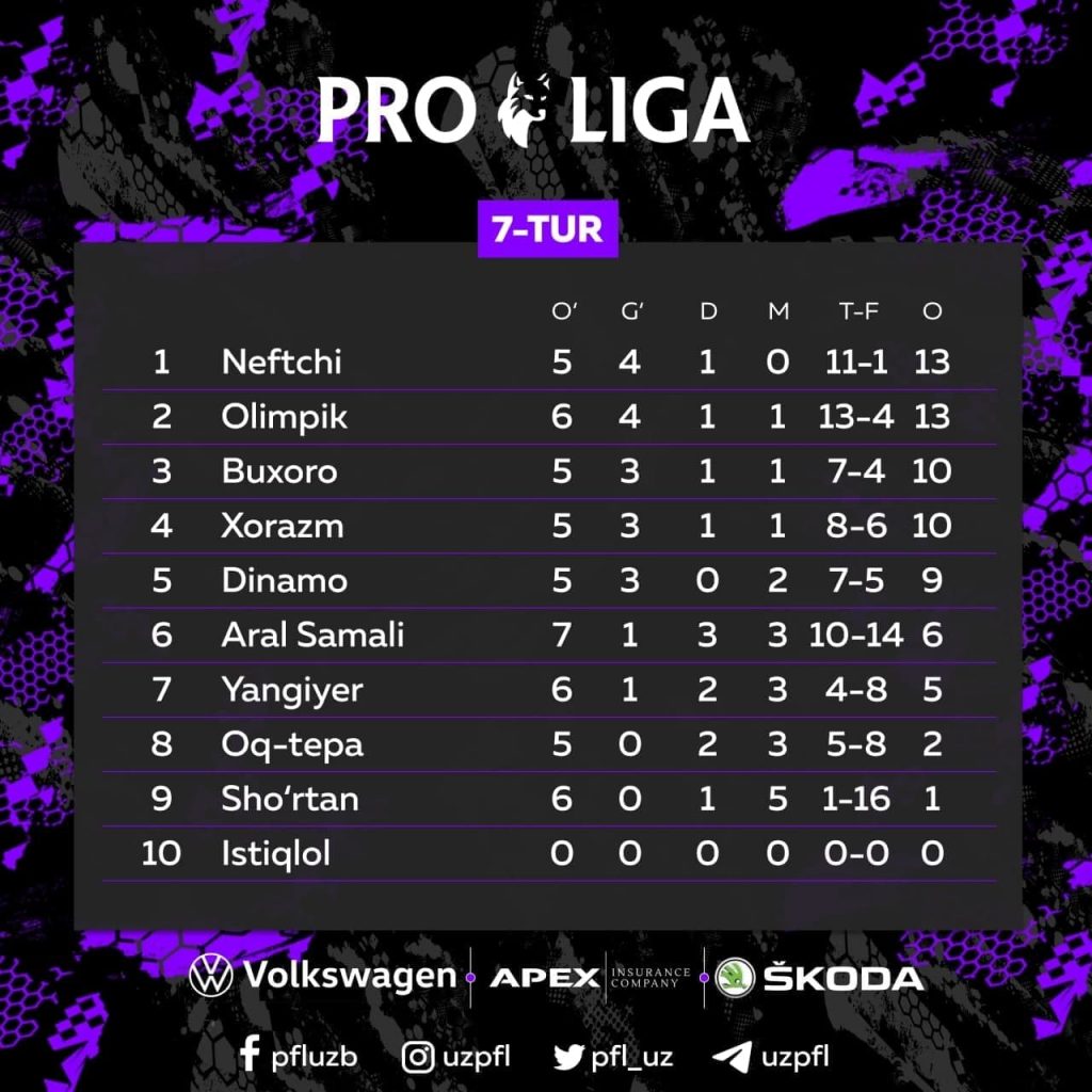 The seventh round of the Pro-League football competitions started today. The Olympic Club, created under the IOC, this year hosted the Aral Samali club from Karakalpakstan on its field.