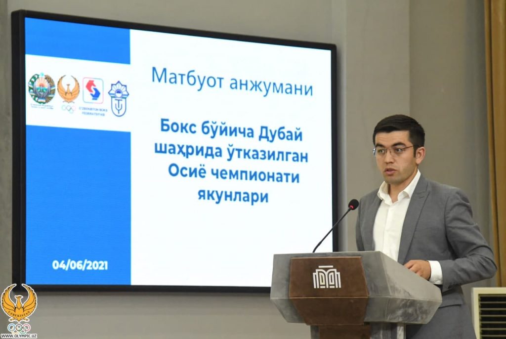 The event was attended by the Secretary General of the Boxing Federation of Uzbekistan Murod Mamadaliyev, adviser to the chairman of the federation Malik Babayev, senior coach of the national team Rakhmatjon Ruziokhunov, Asian and world champion Bahodir Zhalolov, who answered questions from media representatives. During the press conference, the results of the Asian Championship were summed up, as well as preparations for the upcoming Olympic Games in Tokyo were discussed. You can view the full version of the event by clicking on the link:
