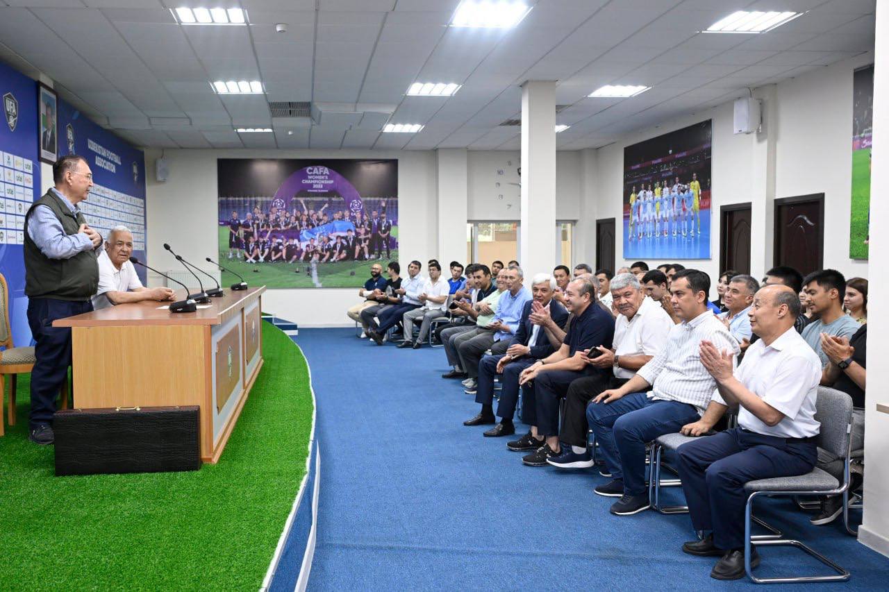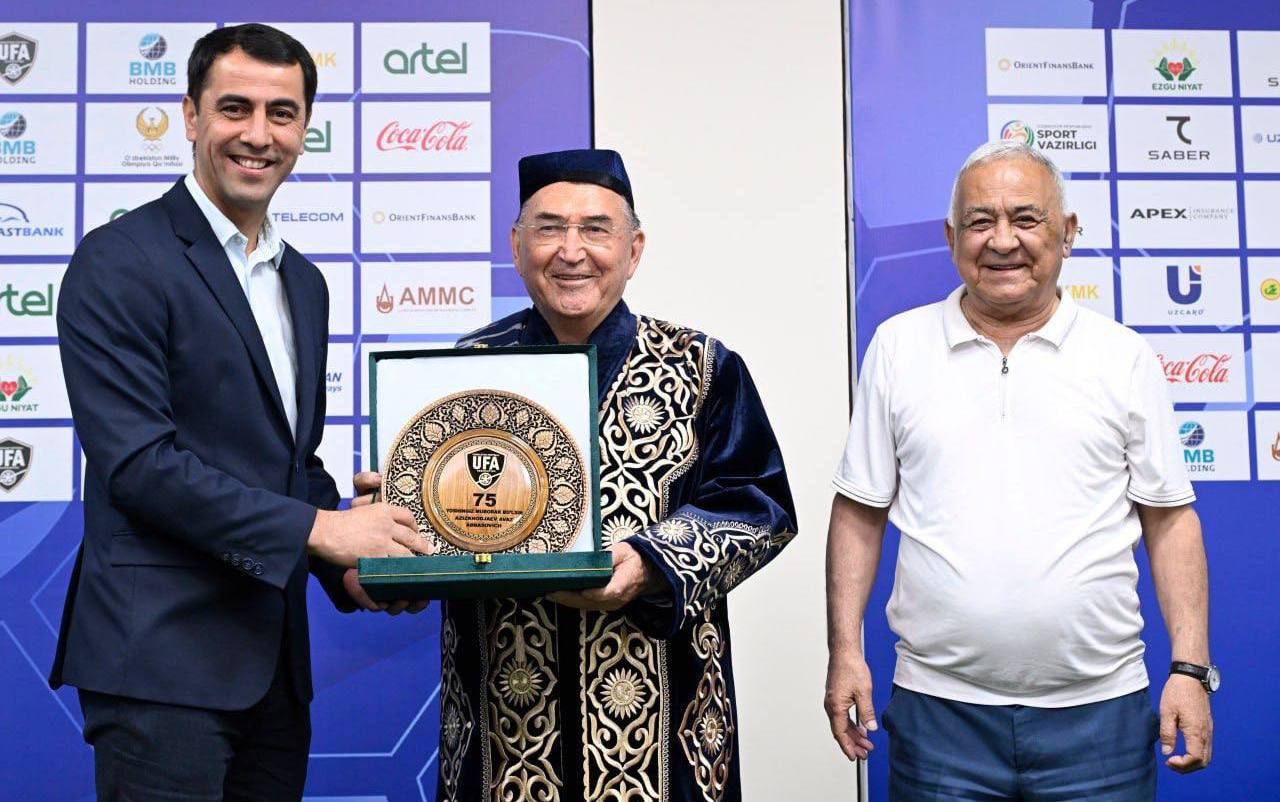 Among the distinguished guests were Minister of Sports Adkham Ikramov, First Deputy Chairman of the National Olympic Committee of Uzbekistan Otabek Umarov, and NOC Secretary General Oybek Kasimov — all of whom personally congratulated Azizkhodjayev for his lifelong dedication to the advancement of Uzbek football.