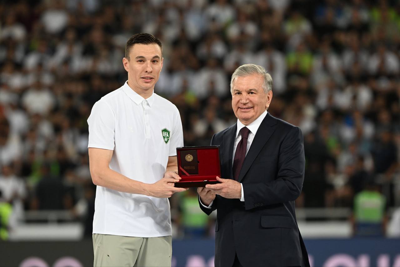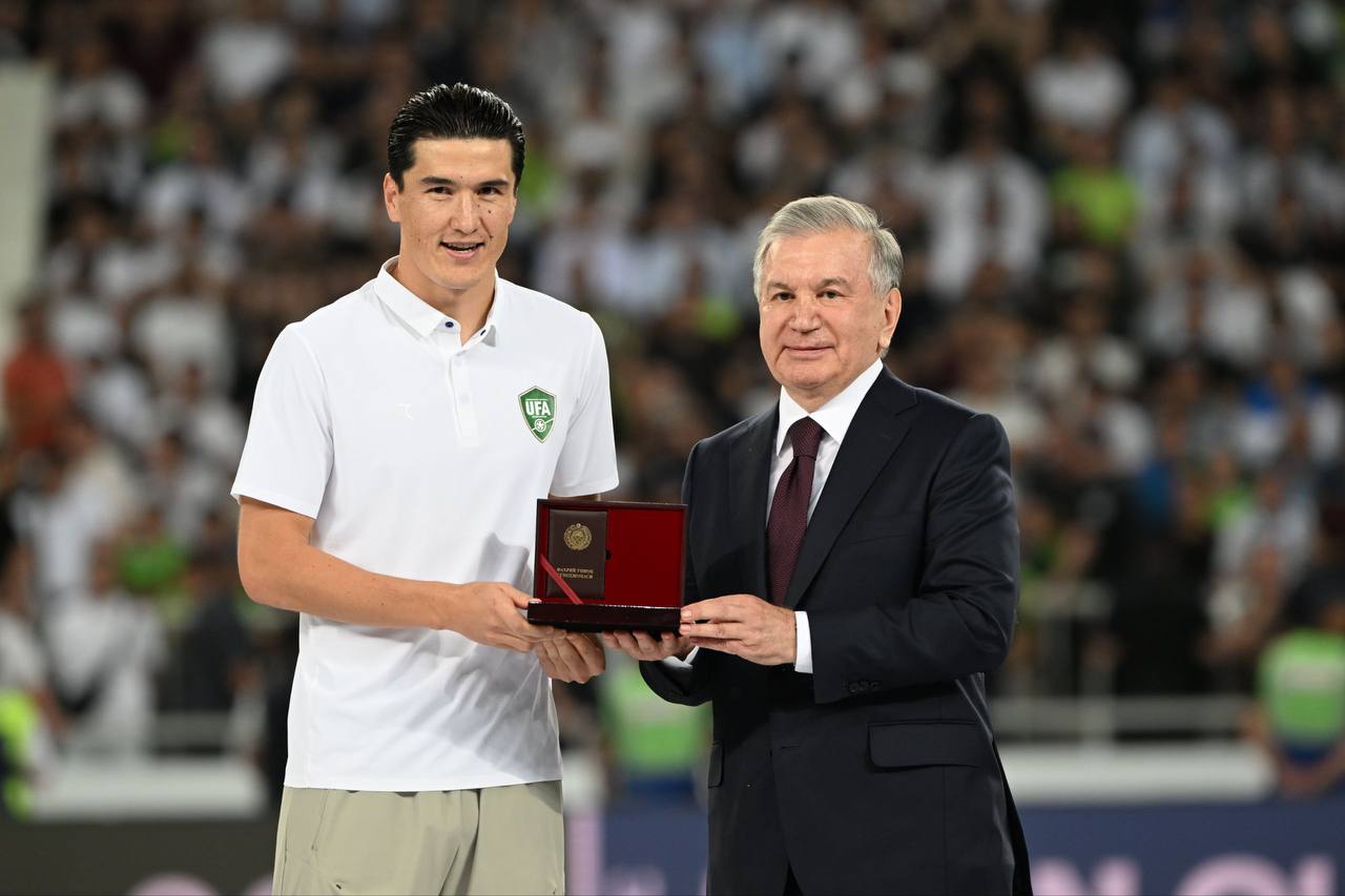 The football celebration continues at Bunyodkor Stadium. Following the match between the national teams of Uzbekistan and Qatar, the President of the Republic of Uzbekistan and Chairman of the National Olympic Committee, Shavkat Mirziyoyev, awarded the Uzbekistan national football players who secured qualification for the 2026 FIFA World Cup, which will be held in the USA, Canada, and Mexico.