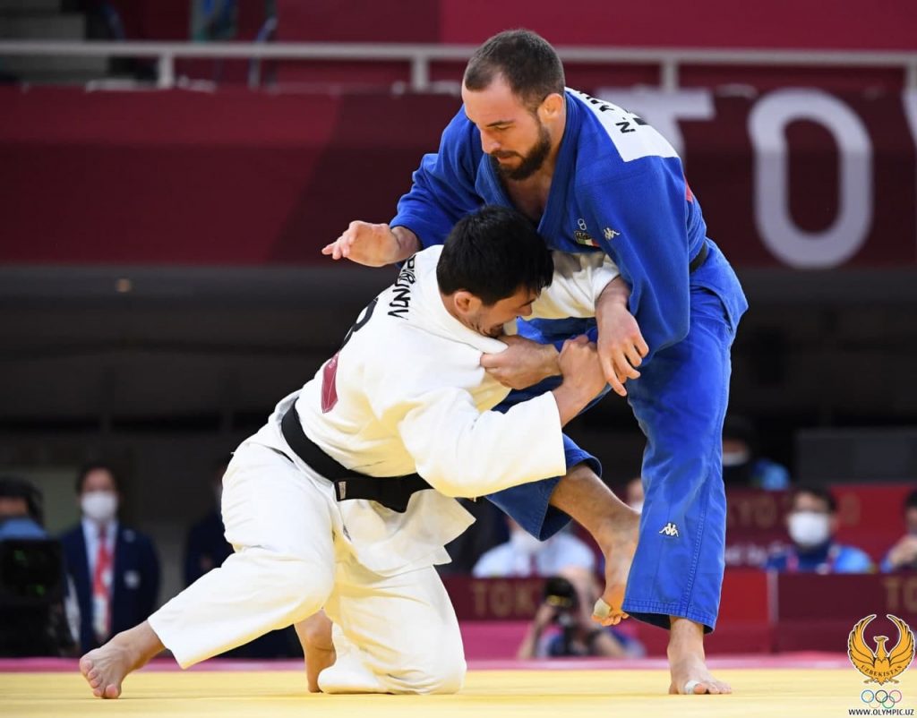 A few minutes ago, our judoka Davlat Bobonov (-90 kg) held a fight against the Italian Nicholas Mungaya and won his first victory at the Olympics. At the beginning of the match, Bobonov took the lead at the expense of "Vasari", which ensured his victory.