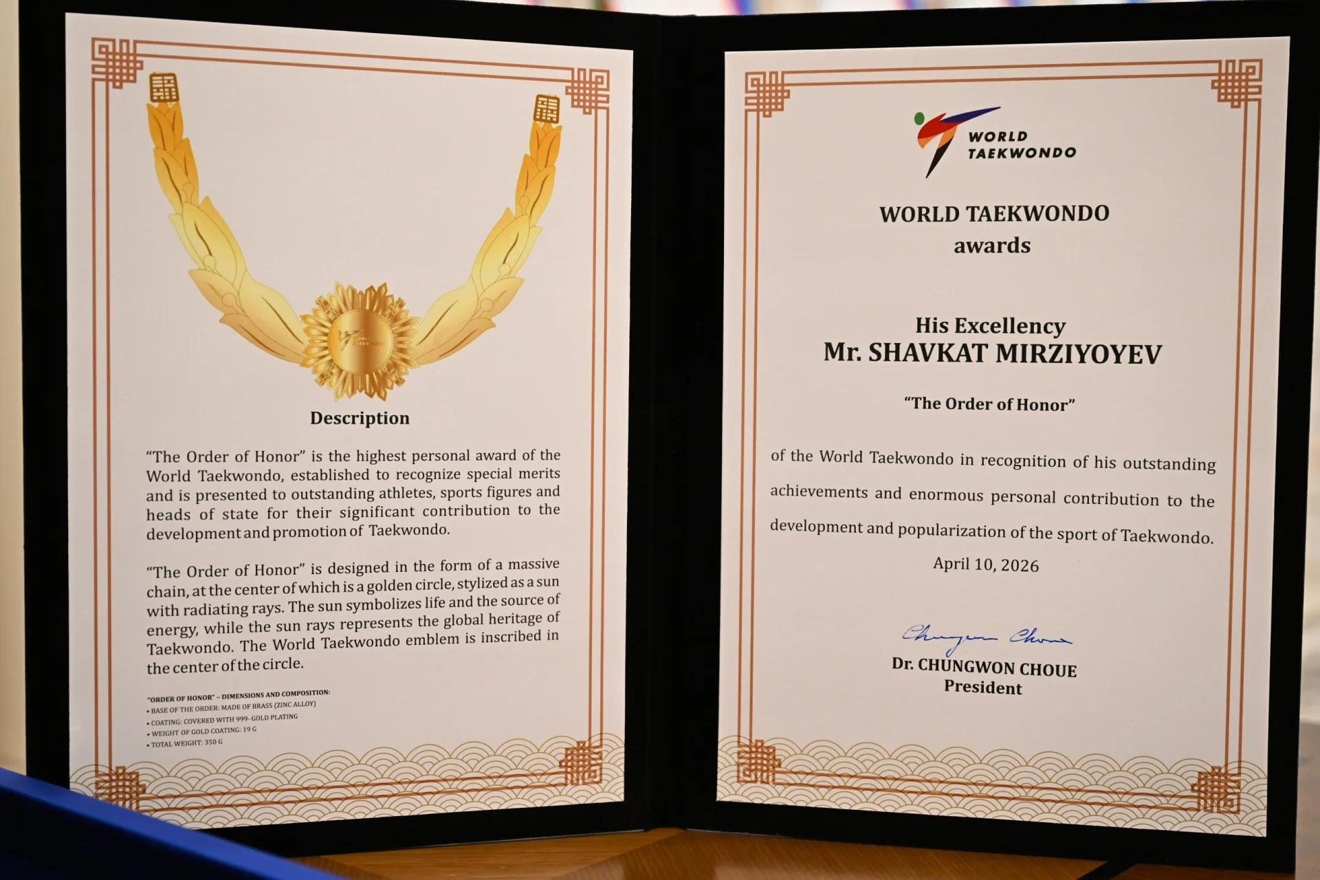 It was emphasized that this is the first time the order has been awarded to the President of Uzbekistan, reflecting international recognition of the country’s large-scale reforms in sports development, particularly in taekwondo, and the promotion of a healthy lifestyle among youth.