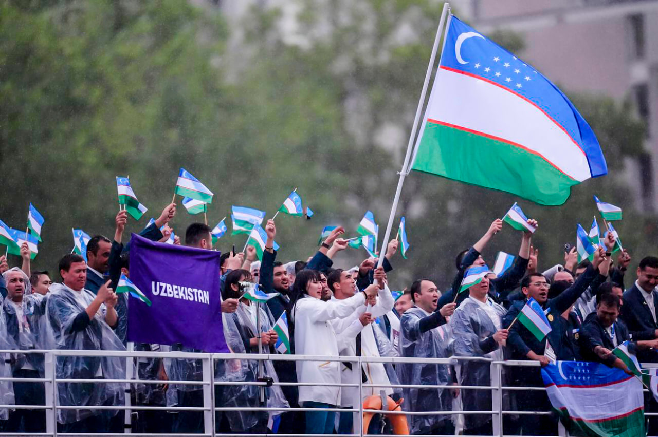 Flag bearers: Abdumalik Khalokov and Zaynab Dayibekova