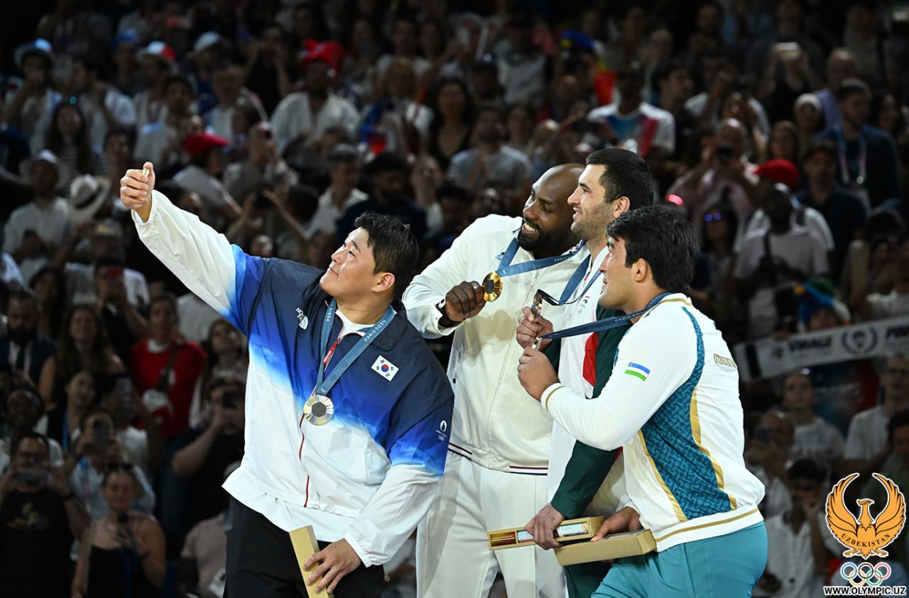 Parij-2024 yozgi Olimpiya o’yinlarining bronza medali sohibi Alisher Yusupov dunyoning eng kuchli dzyudochilar bilan shohsupada