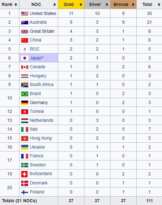 Tokio-2020: Sport turlari bo'yicha qaysi davlatlar yetakchilik qilishdi?