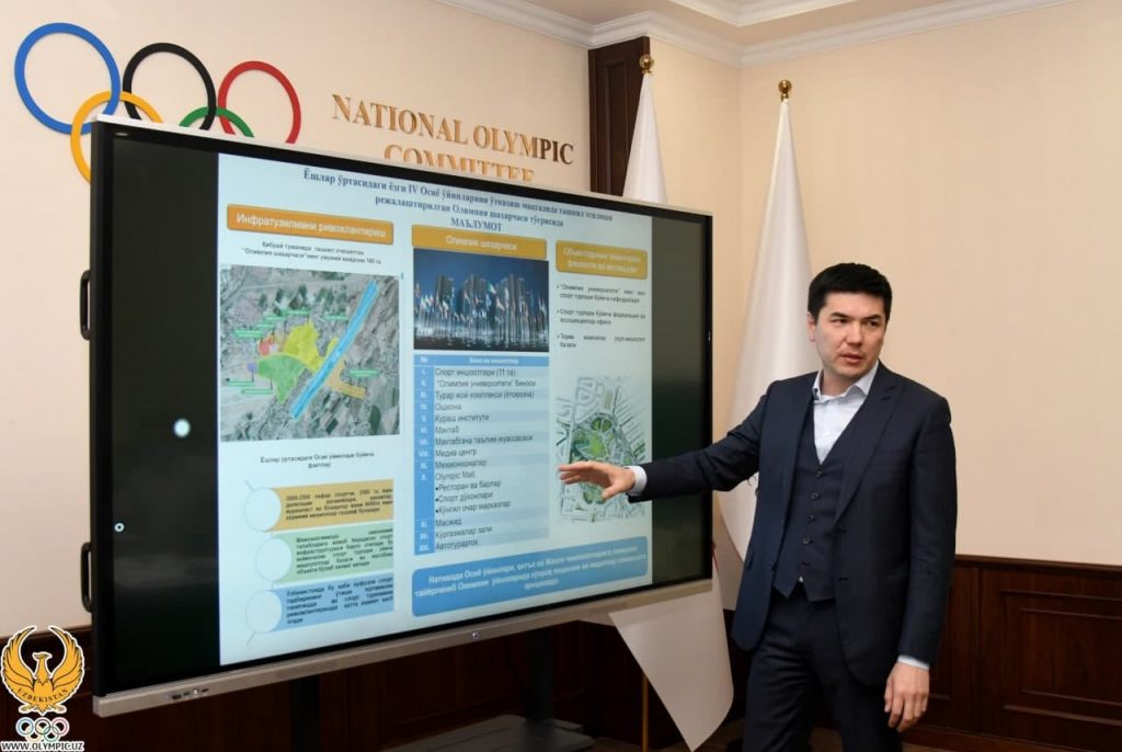 Yig‘ilishda Oybek Kasimov Qibray tumanida barpo etilishi ko‘zda tutilgan Olimpiya shaharchasida sport ob’ektlari uchun ajratilgan maydon, dasturga kiritiladigan sport turlarining hozirgi holati haqida ma’lumot berdi. Shundan so‘ng Rustam Shoabdurahmonov tayyorgarlik jarayonini kuchaytirish bo‘yicha o‘z fikrlarini bildirdi.