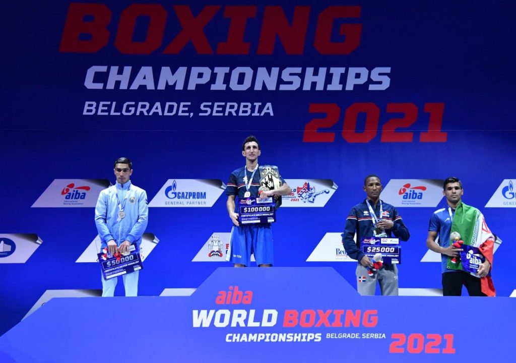 Belgrad shahrida yakuniga yetib borayotgan boks bo‘yicha jahon chempionatida yosh vakilimiz Abdumalik Xalakov -60 kg vazn toifasida kumush medalini qo‘lga kiritganidan xabaringiz bor. Jangdan so‘ng tantanali taqdirlash marosimi bo‘lib o‘tdi. Unda vakilimiz o‘zi uchun ajratilgan medal va 50 ming AQSh dollari miqdoridagi mukofot jamg‘armasini qo‘lga kiritdi. E’tiboringizga ushbu marosimdan tayyorlangan fotosuratlarni havola qilamiz: