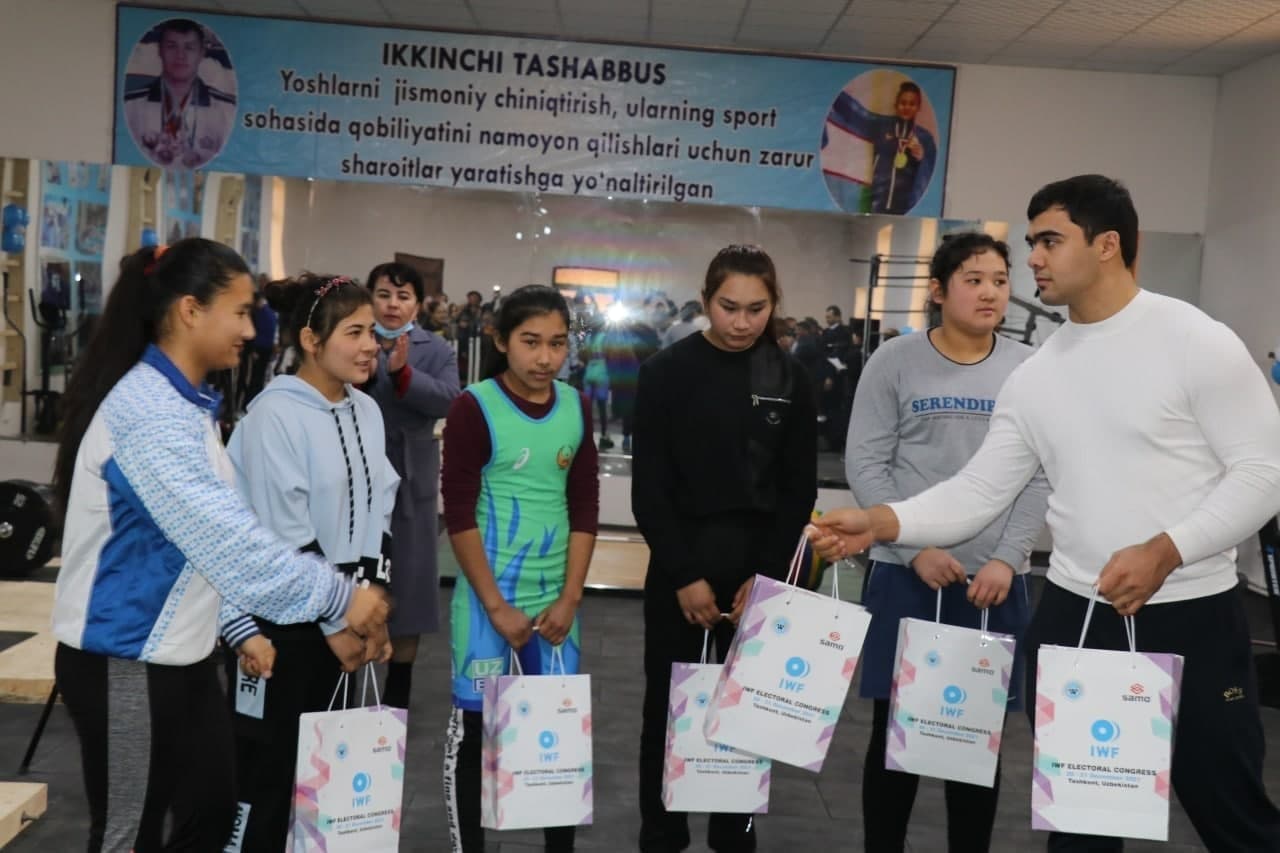 Tuman hokimiyati tashabbusi bilan qurilgan ushbu zalga Oʻzbekiston ogʻir atletika federatsiyasi kerakli inventarlarni yetkazib berdi. Shuningdek, ushbu maskanning ochilishida xizmat qilgan mutasaddi rahbar va boshqa vakillarga federatsiyasining esdalik sovgʻalari topshirildi.