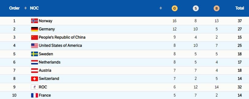 Pekin-2022 nihoyasiga yetdi. Medallar jamgʻarish boʻyicha holat qanday?