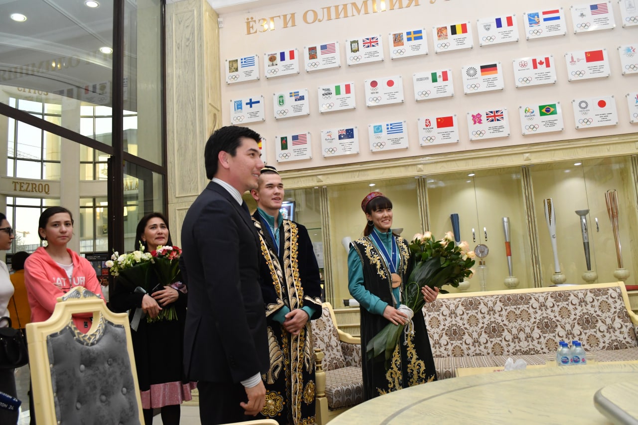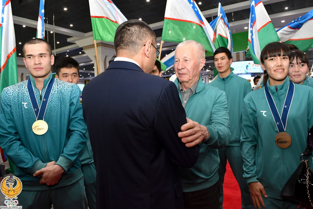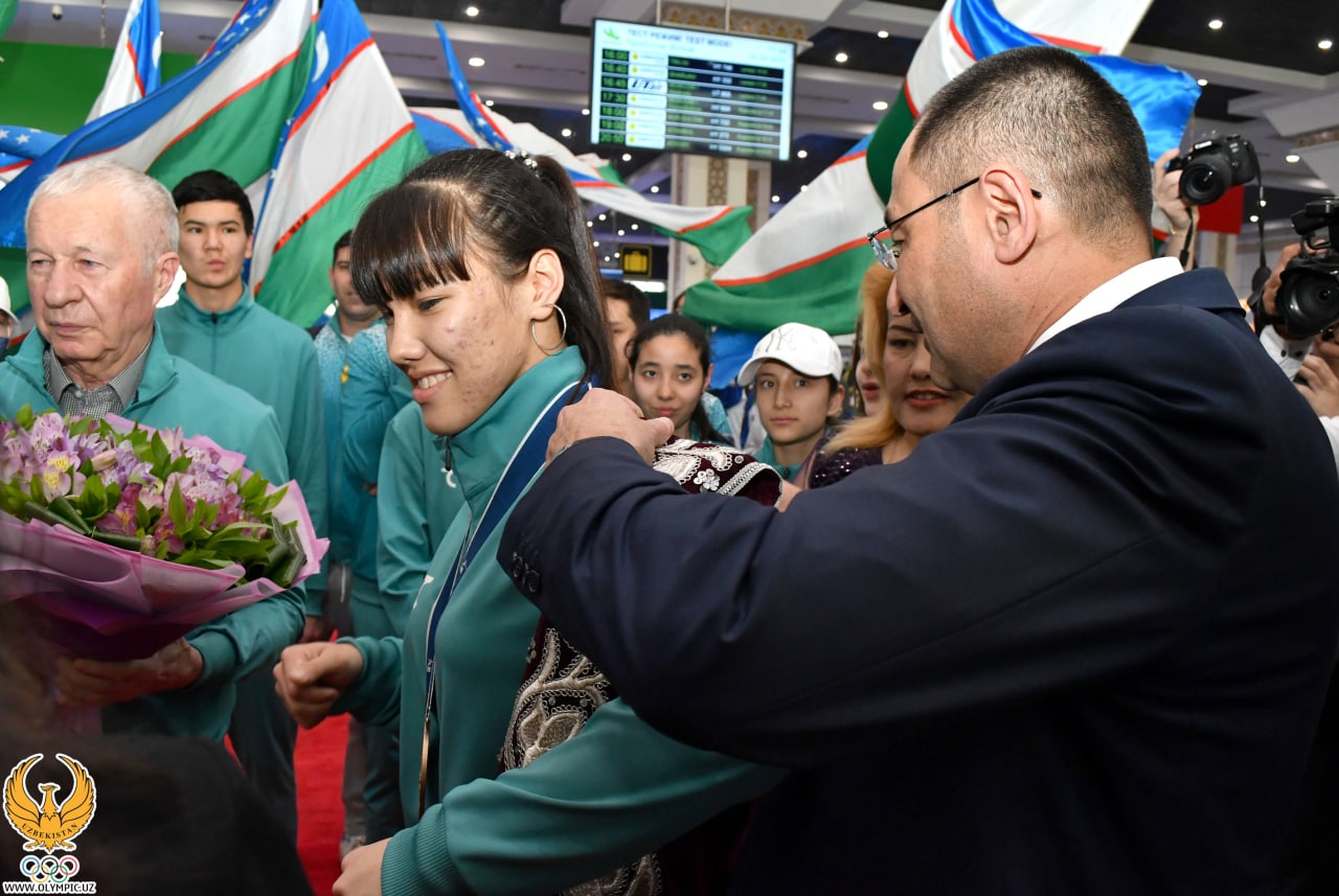 Qahramonlarimiz dastavval Islom Karimov nomidagi Toshkent xalqaro aeroportida Sportni rivojlantirish vaziri Adham Ikramov hamda O‘zbekiston qilichbozlik federatsiyasi raisi Rustam Shoabdurahmonov tomonidan tantanali kutib olindi. Shundan so‘ng tadbirning ikkinchi qismi MOQda o‘tkazildi.