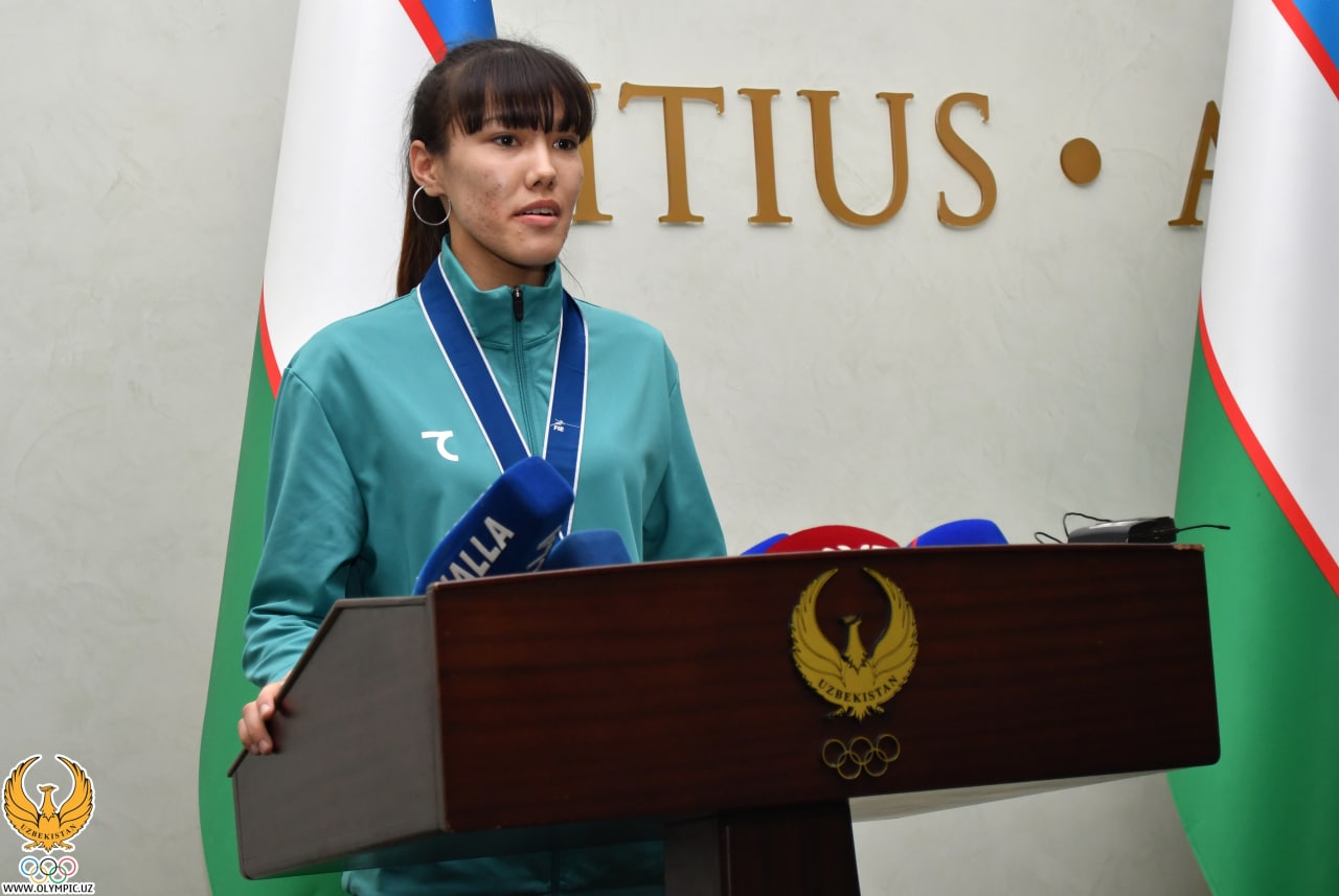 “Bugungi xursandchilik kunimizga sherik bo‘lib, bizni shunday tantana bilan kutib olayotganlaringiz uchun barchangizga minnatdorchilik bildiraman. Bu g‘alabaralarimiz davlatimiz rahbarining biz yoshlarga ko‘rsatayotgan e’tiborlarining mevasi. Kelgusida jahon chempionatining oltin medalini qo‘lga kiritishga va’da beraman".