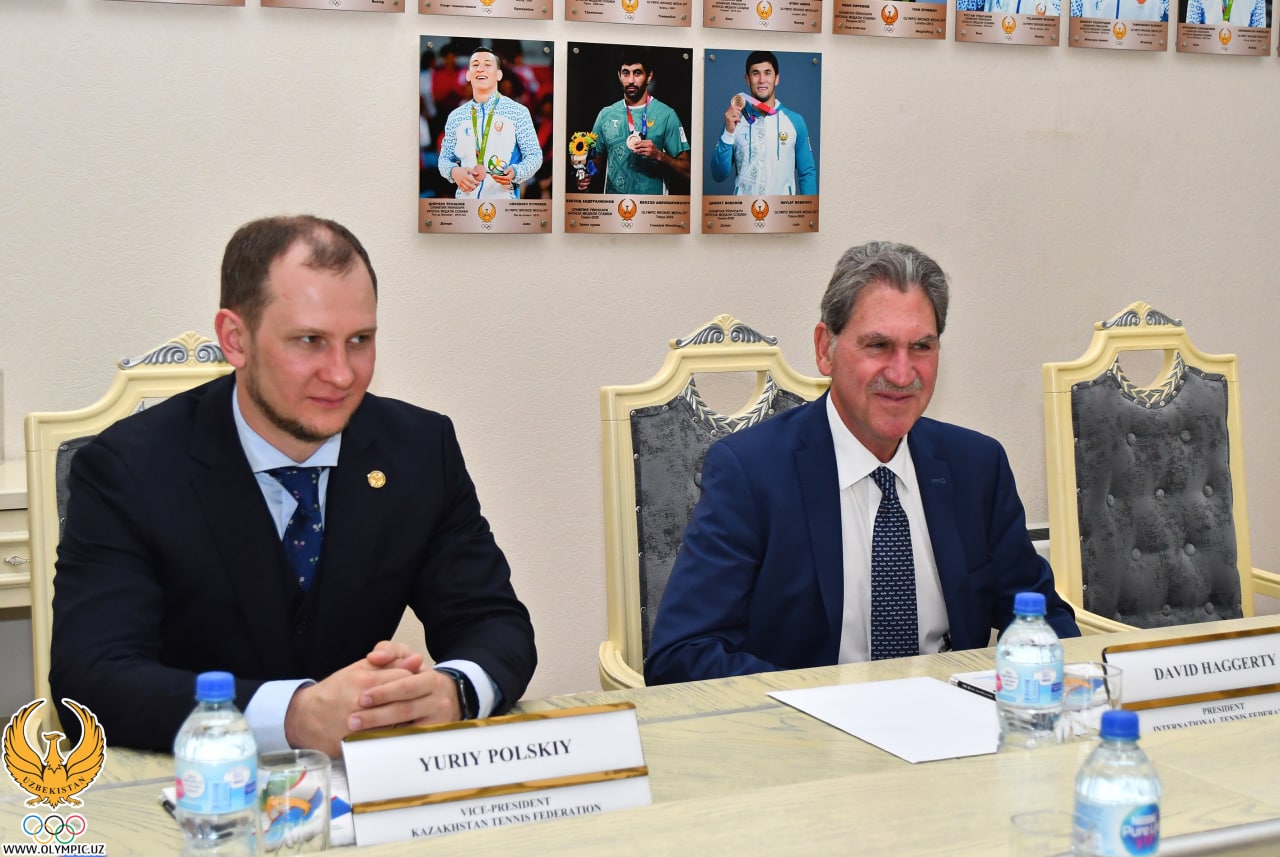 Milliy Olimpiya qo‘mitasida bo‘lib o‘tgan uchrashuvda Sportni rivojlantirish vazirligi hamda Milliy Olimpiya qo‘mitasi rahbariyati Devid Xaggerti bilan o‘zbek tennis maktabining xalqaro arenadagi mavqeyini yanada mustahkamlash bo‘yicha o‘zaro fikr almashdi. Shuningdek, mazkur tadbirda MOQ raisi o‘rinbosari Sherzod Tashmatov va O‘zbekiston tennis federatsiyasi bosh kotibi Iroda To‘laganova ham qatnashdi.