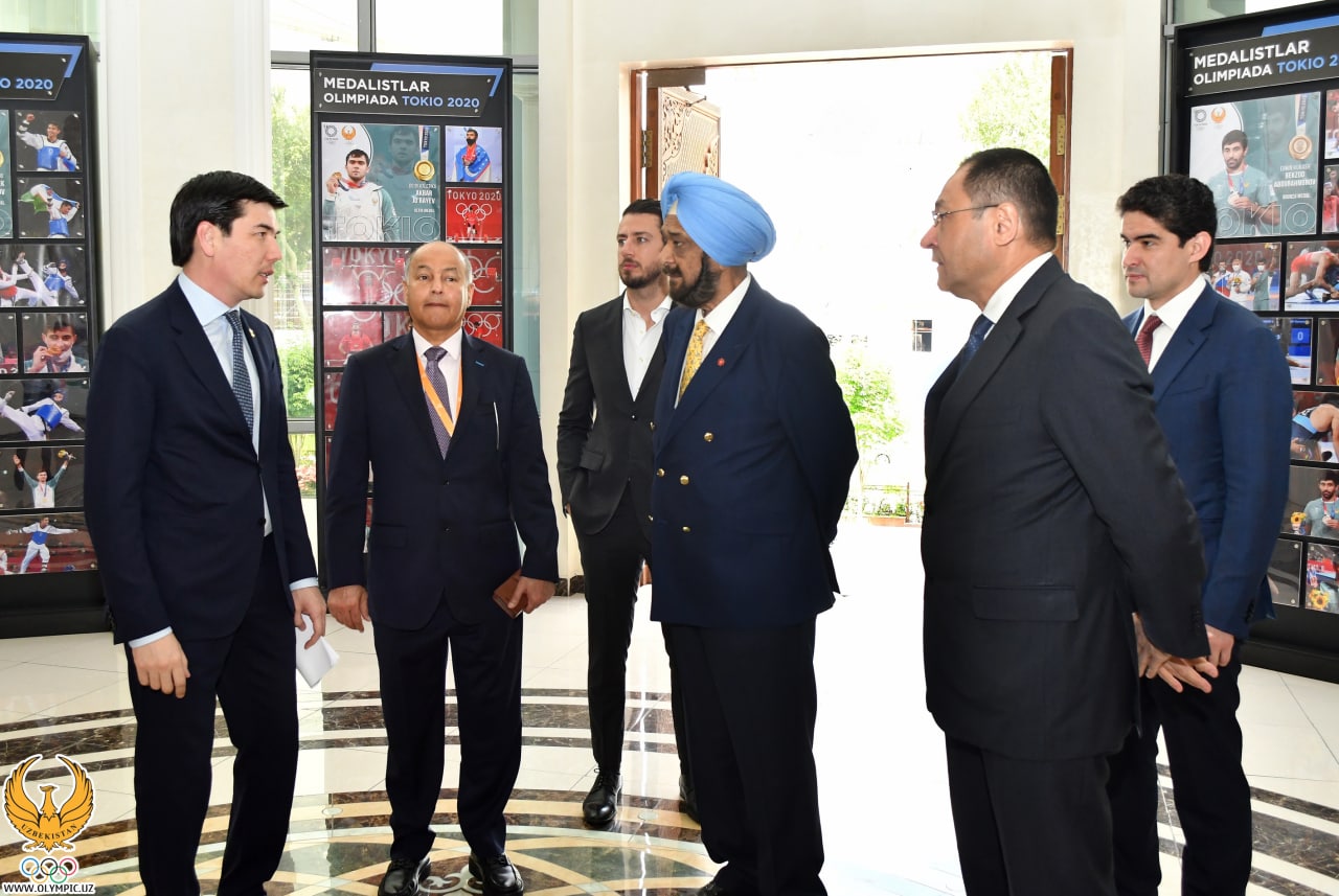 Xabar berganimizdek, ayni paytda Osiyo Olimpiya kengashi (OOK) rahbariyati tashkilot Ijroiya qo‘mitasining yig‘ilishini o‘tkazish va O‘zbekiston MOQning 30 yillik tantanasini nishonlash uchun poytaxtimizda mehmon bo‘lib turibdi. Bugun OOKning amaldagi rahbari Raja Randxir Singx va OOK bosh direktori, Xalqaro suzish federatsiyasi (FINA) prezidenti Husayn Al Musallam MOQga tashrif buyurishdi. Martabali mehmonlari Sportni rivojlantirish vaziri Adham Ikramov, MOQ Bosh kotibi Oybek Kasimov, Qo‘mita raisi o‘rinbosari Azizjon Kamilov qarshi oldilar. Mutasaddilar mehmonlar uchun Qo‘mita binosi bo‘ylab kichik sayohat tashkil qilishdi va ularni o‘zbek sporti tarixi bilan yaqindan tanishtirishdi. Shundan so‘ng rasmiylar o‘rtasida o‘zaro hamkorlik aloqalarini yanada mustahkamlash mavzusida uchrashuv bo‘lib o‘tdi.