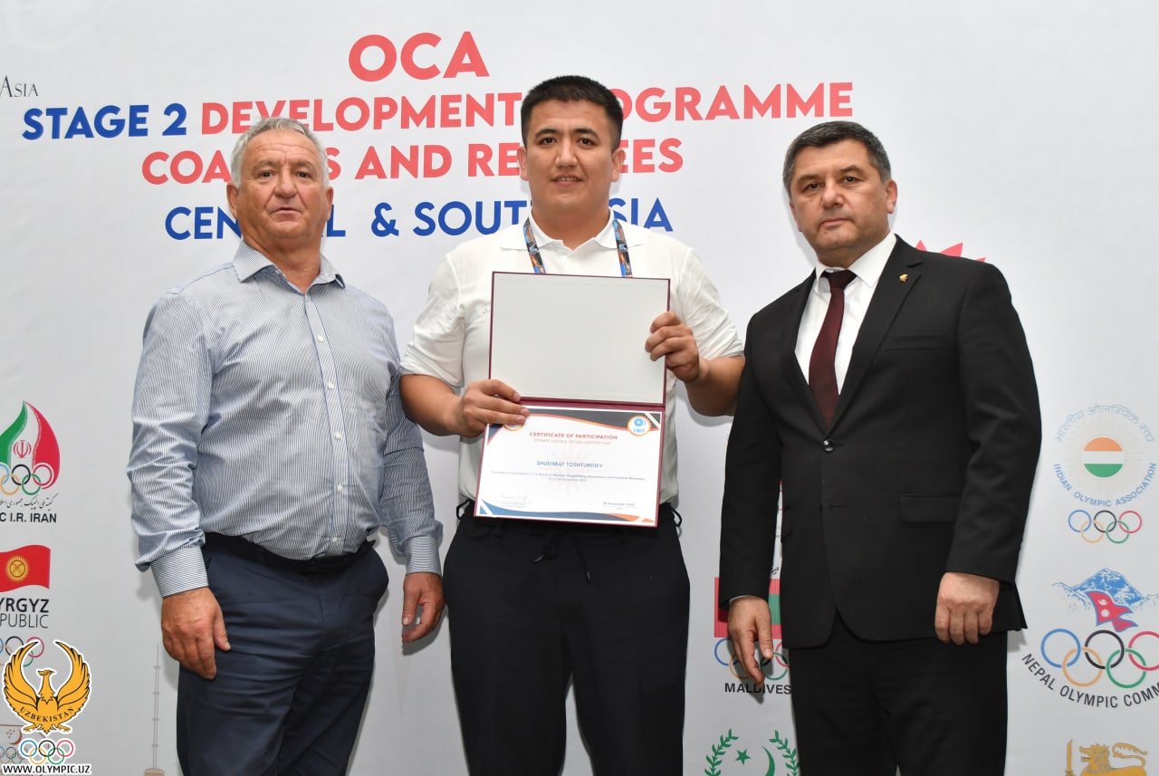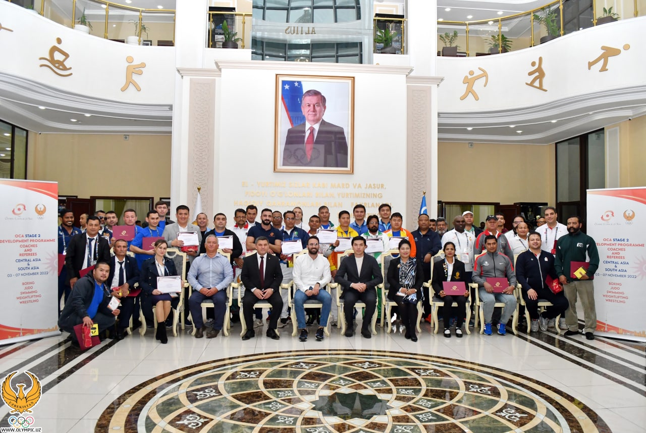 Shundan soʻng Markaziy hamda Janubiy Osiyo mamlakatlaridan tashrif buyurgan murabbiy va hakamlarga sertifikat bilan OOKning esdalik sovgʻalari taqdim etildi.