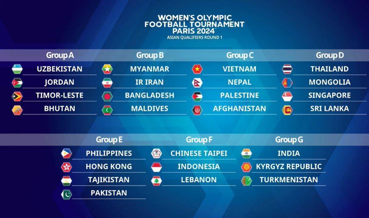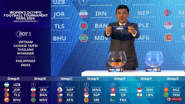Parij-2024 Olimpiya oʻyinlarining ayollar futboli boʻyicha Osiyo mintaqasi 1-saralash bosqichi oʻyinlariga qurʼa tashlandi. Unda ishtirok etadigan Oʻzbekiston ayollar terma jamoasi “A” guruhidan joy oldi va Iordaniya, Sharqiy Timor hamda Butan jamoalariga qarshi bahs olib boradigan boʻldi.