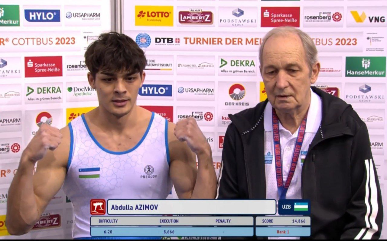 Oʻzining sevimli ot ustida mashq dasturida qatnashgan Abdulla Azimov 14.866 ball bilan eng yuqori ochkoni jamgʻarishga erishdi va oltin medalni qoʻlga kiritdi. Qayd etish joiz, bu Azimov uchun Jahon kuboklaridagi birinchi muvaffaqiyat hisoblanadi.