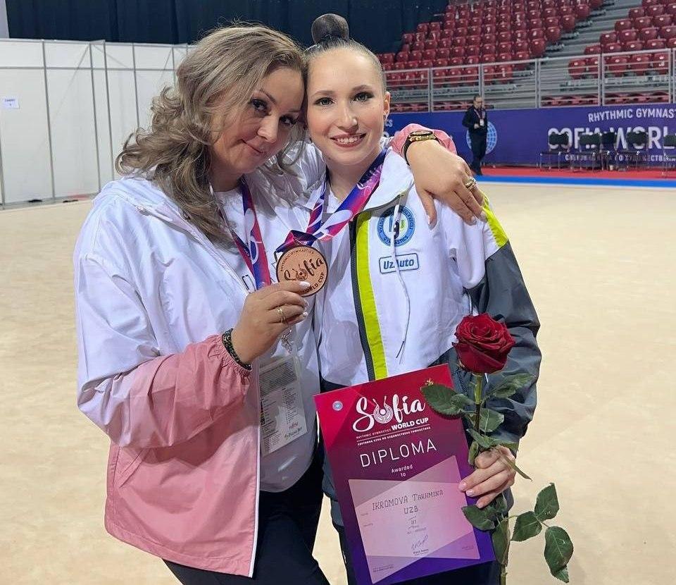 Xabar berganimizdek, ayni kunlarda Bolgariyaning Sofiya shahrida badiiy gimnastika boʻyicha Jahon kubogi bosqichi boʻlib oʻtmoqda. Unda ishtirok etayotgan Oʻzbekiston terma jamoasi aʼzosi Taxmina Ikromova koʻpkurash yoʻnalishida shohsupaga koʻtarildi. Hamyurtimiz 4 mashq yakuni boʻyicha 124.550 ball jamgʻarishga erishdi va bu unga bronza medalini taqdim qildi.