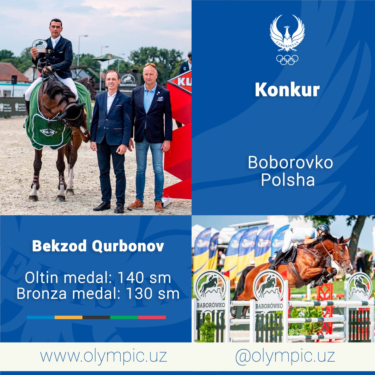 Konkur boʻyicha Oʻzbekiston terma jamoasi aʼzosi Bekzod Qurbonov Boborovko shahrida tashkil etilayotgan CSI 2* tasnifidagi xalqaro musobaqada ishtirok etishi haqida maʼlum qilgan edik.
