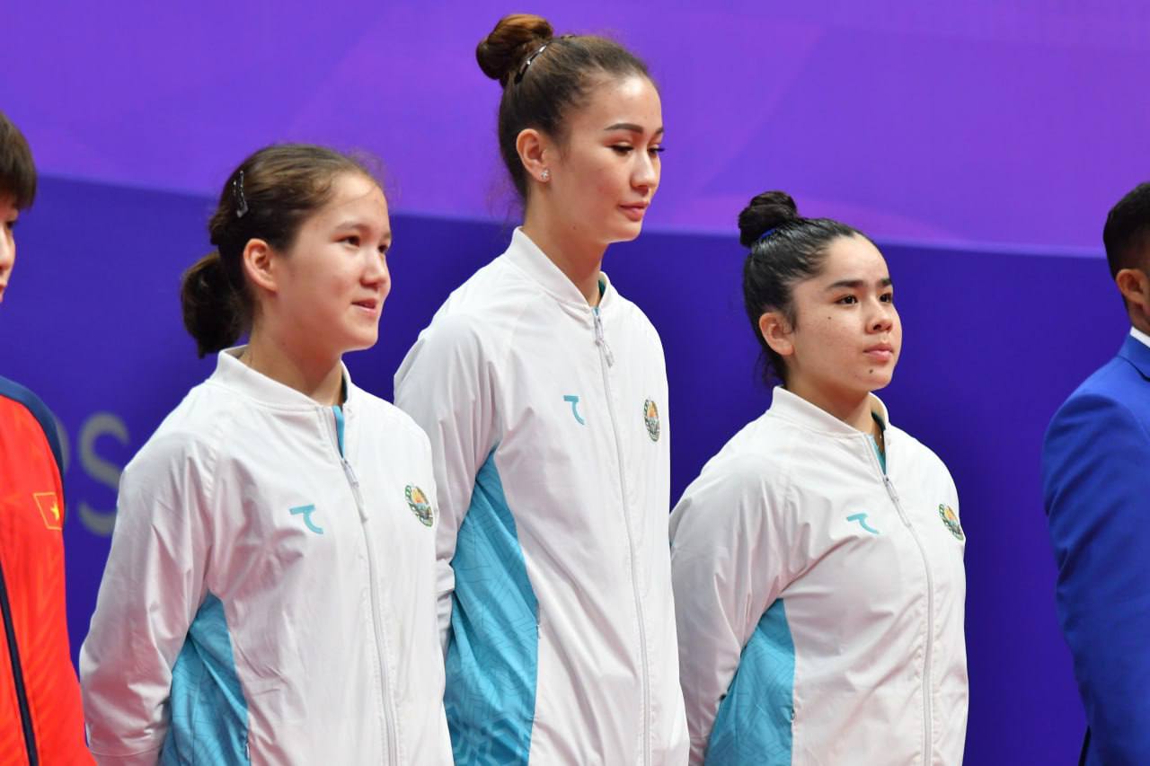 Stol tennisi bellashuvlarida qatnashayotgan qizlarimiz pley-off bosqichidagi yurushini chorak final ostonasida tugatishdi. Vyetnamga qarshi bahs olib borgan Marhabo Magdiyeva, Rozalina Xadjayeva hamda Asel Erkebayevadan iborat jamoamiz 0:3 hisobida mag'lubiyatga uchradi.