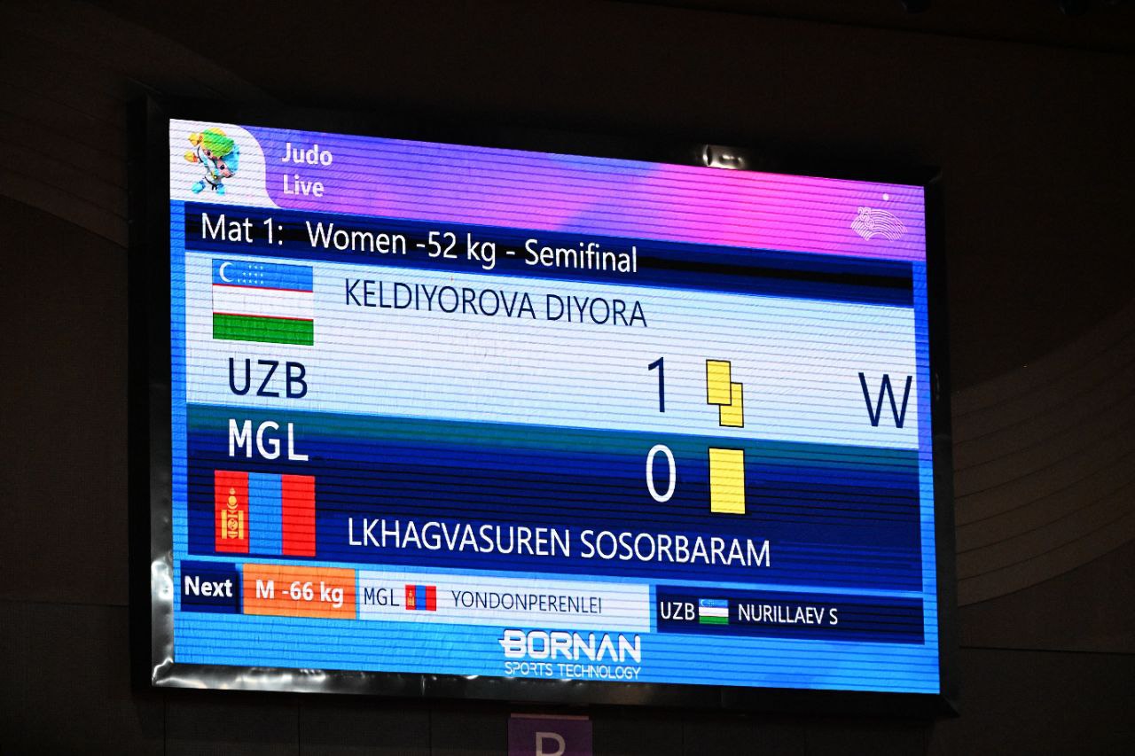 Dzyudo bahslarida saralash bellashuvlari ortda qoldi. Unga koʻra, hamyurtlarimizdan Diyora Keldiyorova (-52 kg) final yoʻllanmasini qoʻlga kiritgan boʻlsa, Sardor Nurillayev (-66 kg) va Halima Qurbonova (-48 kg) bronza medali uchun bahs olib boradigan boʻldi. Kechki dasturdagi juftliklar quyidagicha: