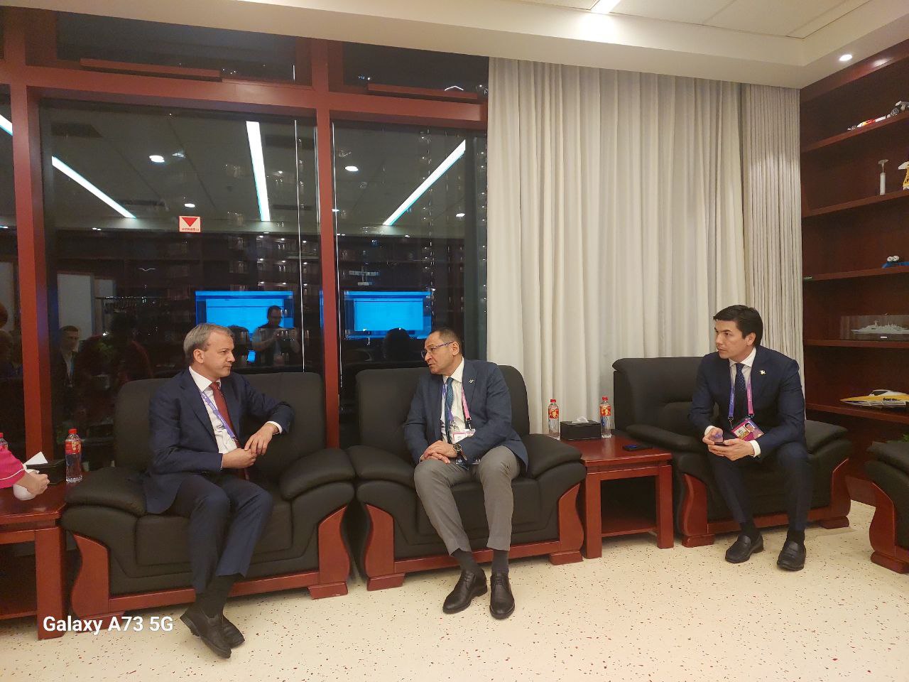 Maʼlum qilganimizdek, Oʻzbekiston delegatsiyasi rahbariyati Osiyo oʻyinlari doirasida bir qator xalqaro federatsiyalar mutasaddilari bilan koʻrishib, keng qamrovli hamkorlik rejalarini muhokama qilmoqda. Shaxmat musobaqalari doirasida Yoshlar siyosati va sport vaziri Adham Ikramov Butunjahon shaxmat federatsiyasi Prezidenti Arkadiy Dvorkovich bilan koʻrishdi. Unda MOQ Bosh kotibi Oybek Kasimov ham ishtirok etdi.