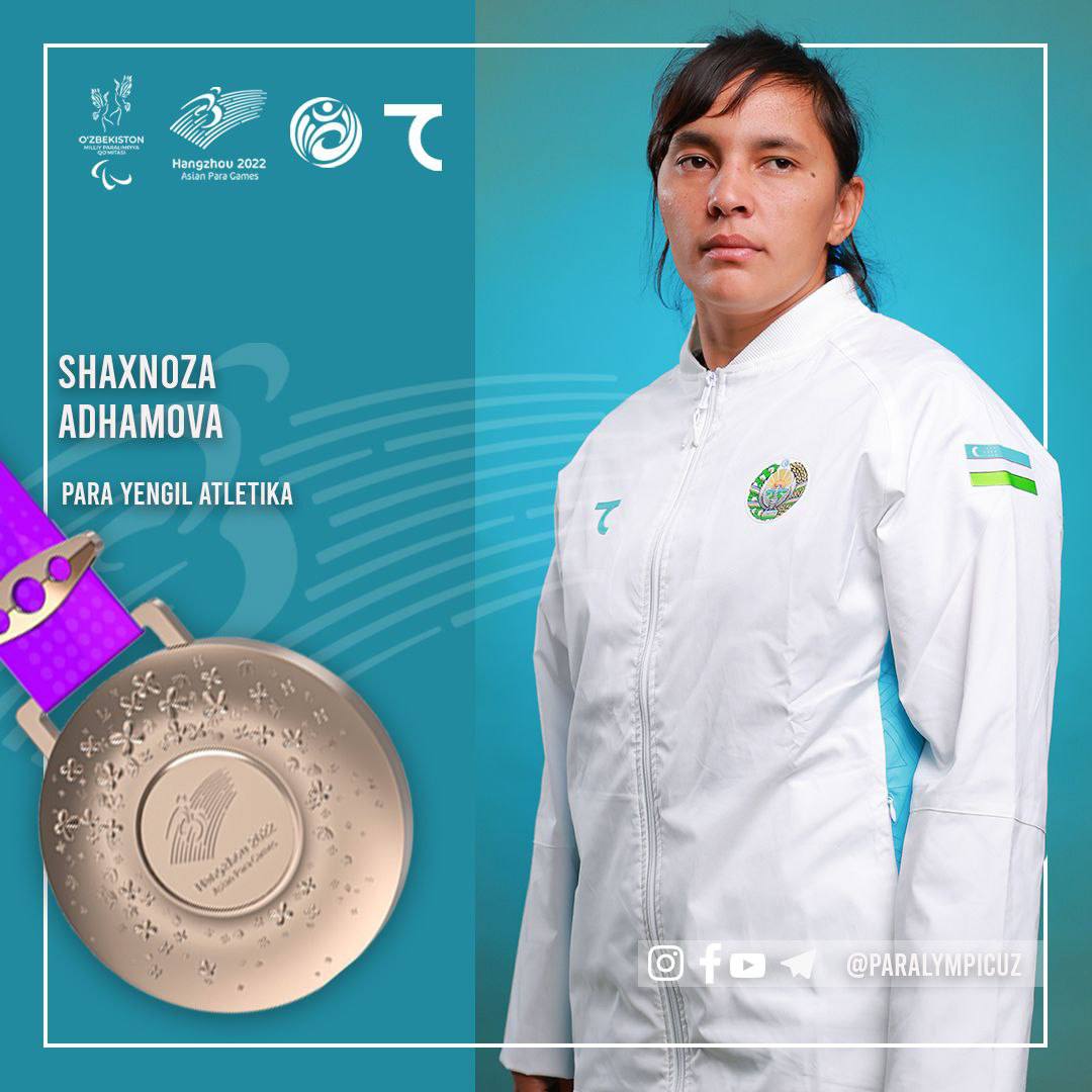 Oʻzbekiston delegatsiyasining gʻaznasiga yana bir bronza medali qoʻshib qoʻyildi. Unga para-yengil atletikachimiz Shahnoza Adhamova mualliflik qildi. F11 toifasida disk uloqtirish dasturida ishtirok etgan hamyurtimiz 27.08 metr natija bilan uchinchi oʻrinni qoʻlga kiritdi.