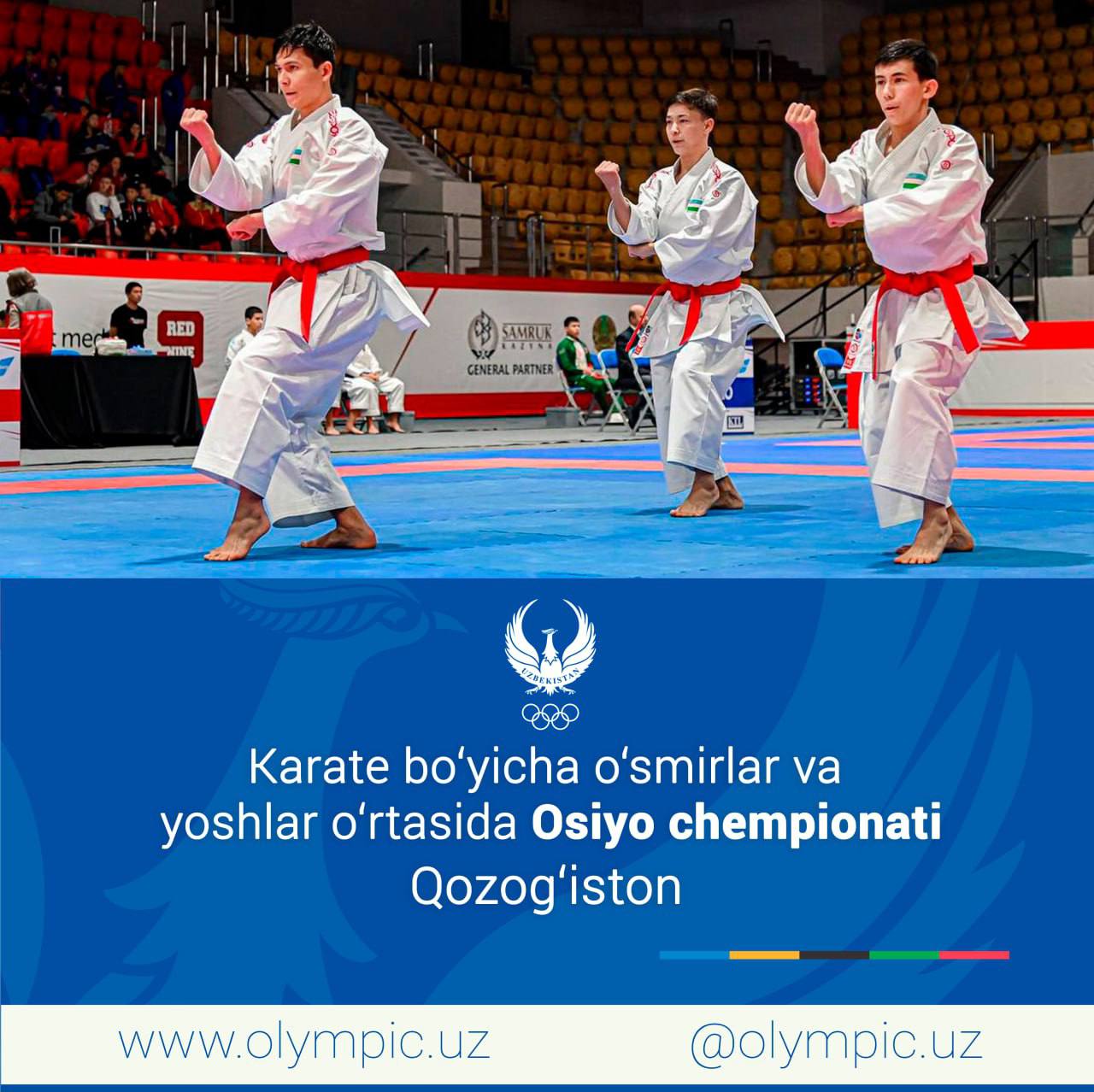 Qozogʻistonning Almati shahrida davom etayotgan karate WKF boʻyicha oʻsmirlar va yoshlar oʻrtasidagi Osiyo chempionatining bugungi bellashuvlari ham Oʻzbekiston terma jamoasi uchun muvaffaqiyatli oʻtdi. Unda hamyurtlarimiz 1 ta oltin va 3 ta bronza medallariga sazovor boʻlishdi. Barcha medallar oʻsmirlar toifasida bahs olib borgan karatechilarimiz tomonidan qoʻlga kiritildi. Gʻolib va sovrindorlar roʻyxati: