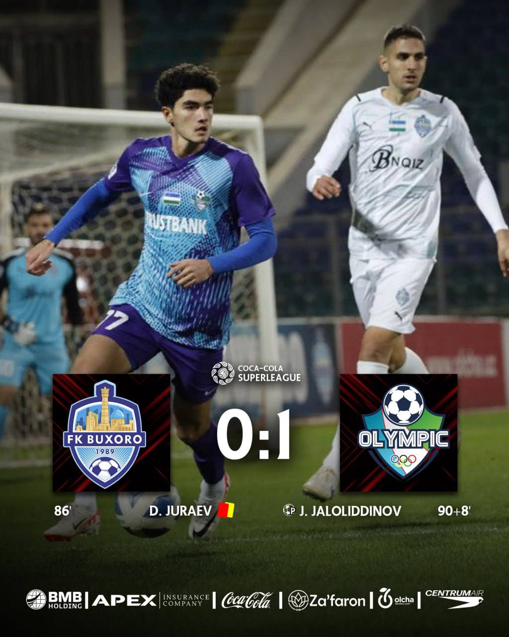 MOQ qoshida tashkil etilgan “Olimpik” futbol klubi 19-turning qoldirilgan uchrashuvini oʻtkazdi. Safarda “Buxoro” bilan bahs olib borgan jamoamiz 1:0 hisobida g’alaba qozondi va ochkolari sonini 28 taga yetkazib oldi.