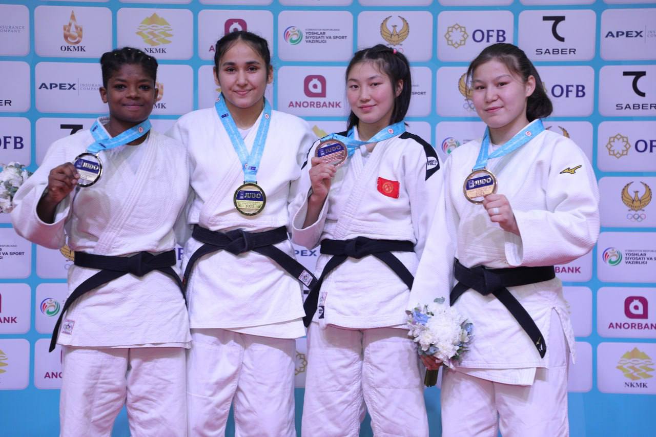 Dzyudo boʻyicha poytaxtimiz mezbonlik qilayotgan yoshlar oʻrtasidagi Osiyo chempionatining bugungi kun bellashuvlari oʻz nihoyasiga yetdi. Ushbu kun bahslari hamyurtlarimiz uchun muvaffaqiyatli oʻtib, sportchilarimiz 2 ta oltin, 2 ta kumush va 1 ta bronza medallarini jamgʻarishdi. Bugun shohsupaga koʻtarilgan dzyudochilarimiz: