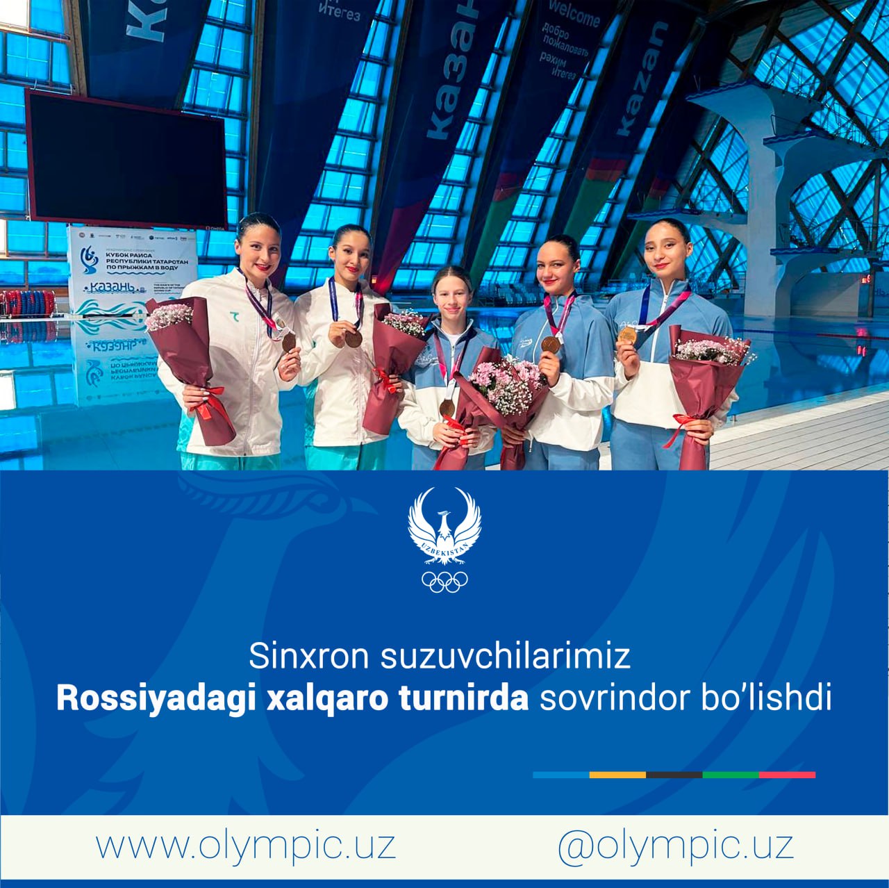 Ayni kunlarda Rossiya Federatsiyasining Qozon shahri sinxron suzish boʻyicha xalqaro musobaqaga mezbonlik qilmoqda. Unda Oʻzbekiston terma jamoasi ham muvaffaqiyatli ishtirok etyapti.