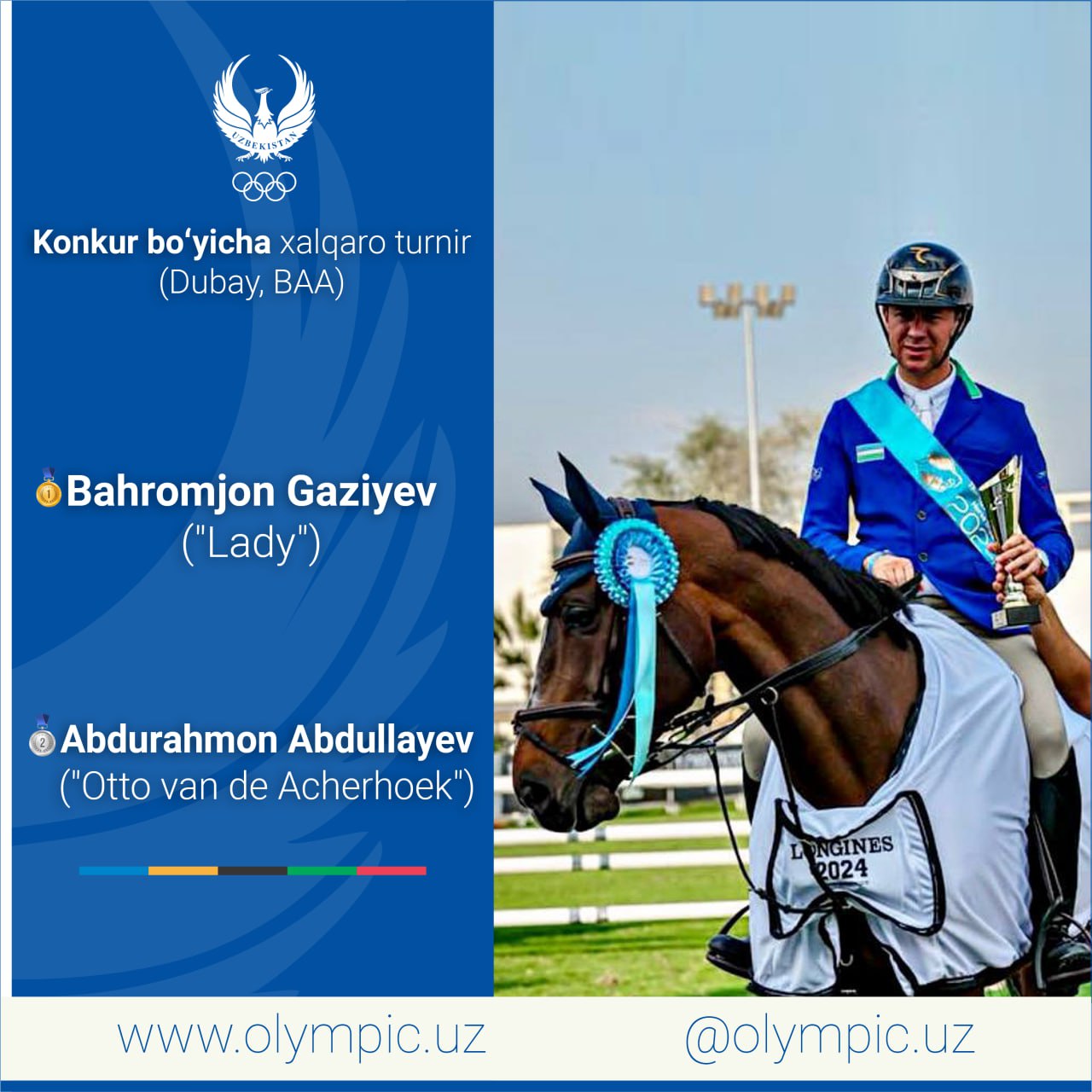 Ayni kunlarda BAAning Dubay shahrida ot sportining konkur yoʻnalishi boʻyicha CSI2* tasnifidagi xalqaro musobaqa oʻtkazilmoqda. Quvonarlisi, unda ishtirok etayotgan Oʻzbekiston terma jamoasi aʼzolari sovrindorlar qatoridan joy olishmoqda.