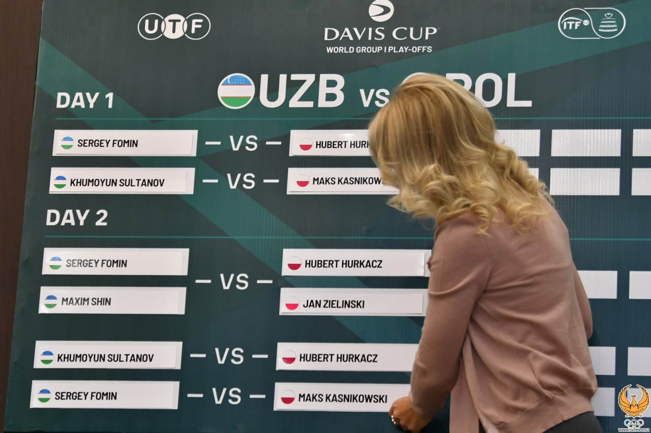 Maʼlum qilganimizdek, 2-3-fevral kunlari Toshkentda Devis kubogi jahon saralash bosqichining birinchi raundidan oʻrin olgan Oʻzbekiston – Polsha terma jamoalari oʻrtasidagi bahs boʻlib oʻtadi. Bugun bellashuvlar oldidan qurʼa tashlash marosimi va matbuot anjumani oʻtkazildi.