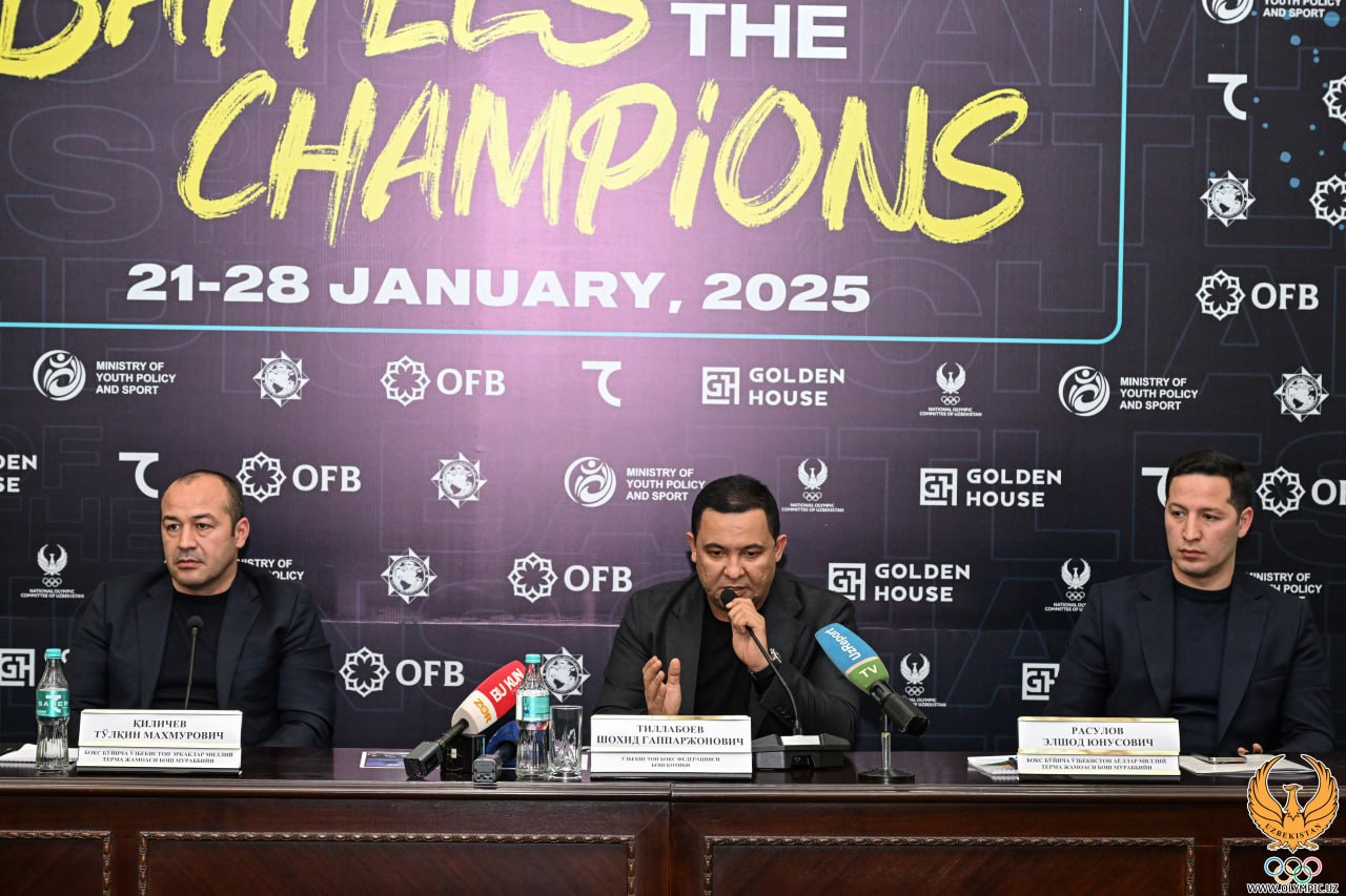 Maʼlum qilganimizdek, ertaga poytaxtimizdagi Respublika Olimpiya va Paralimpiya sport turlariga tayyorlash markazi (ROPSTTM)da boks boʻyicha kattalar oʻrtasidagi Oʻzbekiston chempionati start oladi. Bugun Milliy Olimpiya qoʻmitasida “Battles of the champions” nomi ostida oʻtkaziladigan mazkur musobaqa oldidan matbuot anjumani tashkil etildi. Unda federatsiya bosh kotibi Shohid Tillaboyev, terma jamoa bosh murabbiyi Toʻlqin Qilichev hamda ayollar jamoasi murabbiyi Elshod Rasulov ishtirok etishdi.