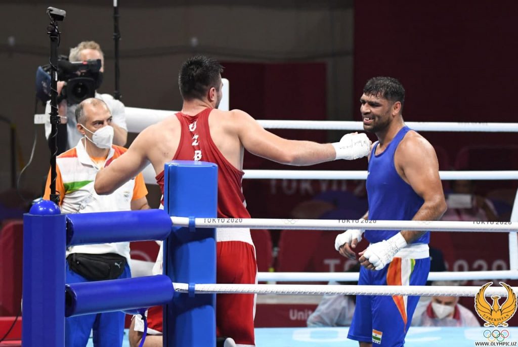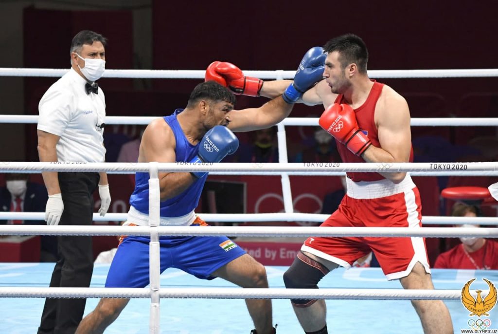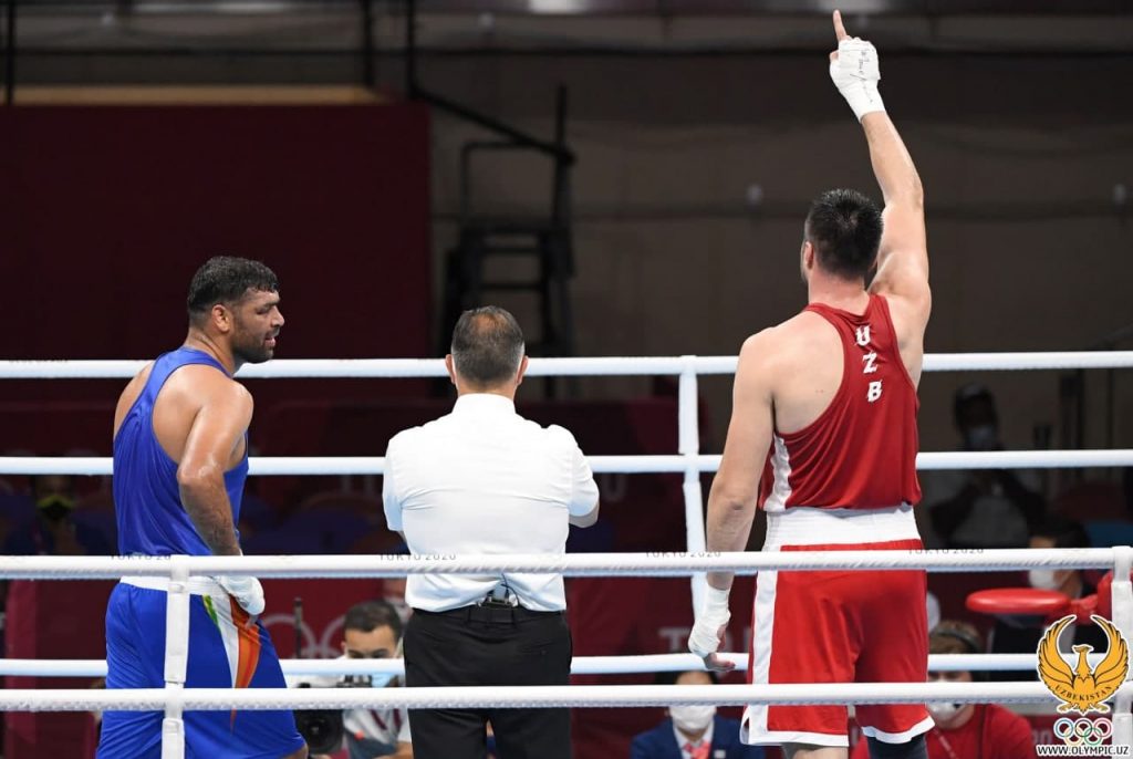Bahodir Jalolov Tokio Olimpiadasida bokschilarimiz orasida birinchi bo‘lib yarim final yo‘llanmasini qo‘lga kiritdi. Hindistonlik Satish Kumarga qarshi kechgan jangda hamyurtimiz o‘zining kuchli va aniq zarbalari bilan raqibga hech qanday imkoniyat qoldirmadi. Qarshi oling, Jalolovning muvaffaqiyatli ishtirokidan sara suratlar: