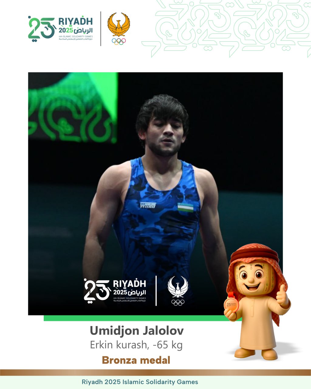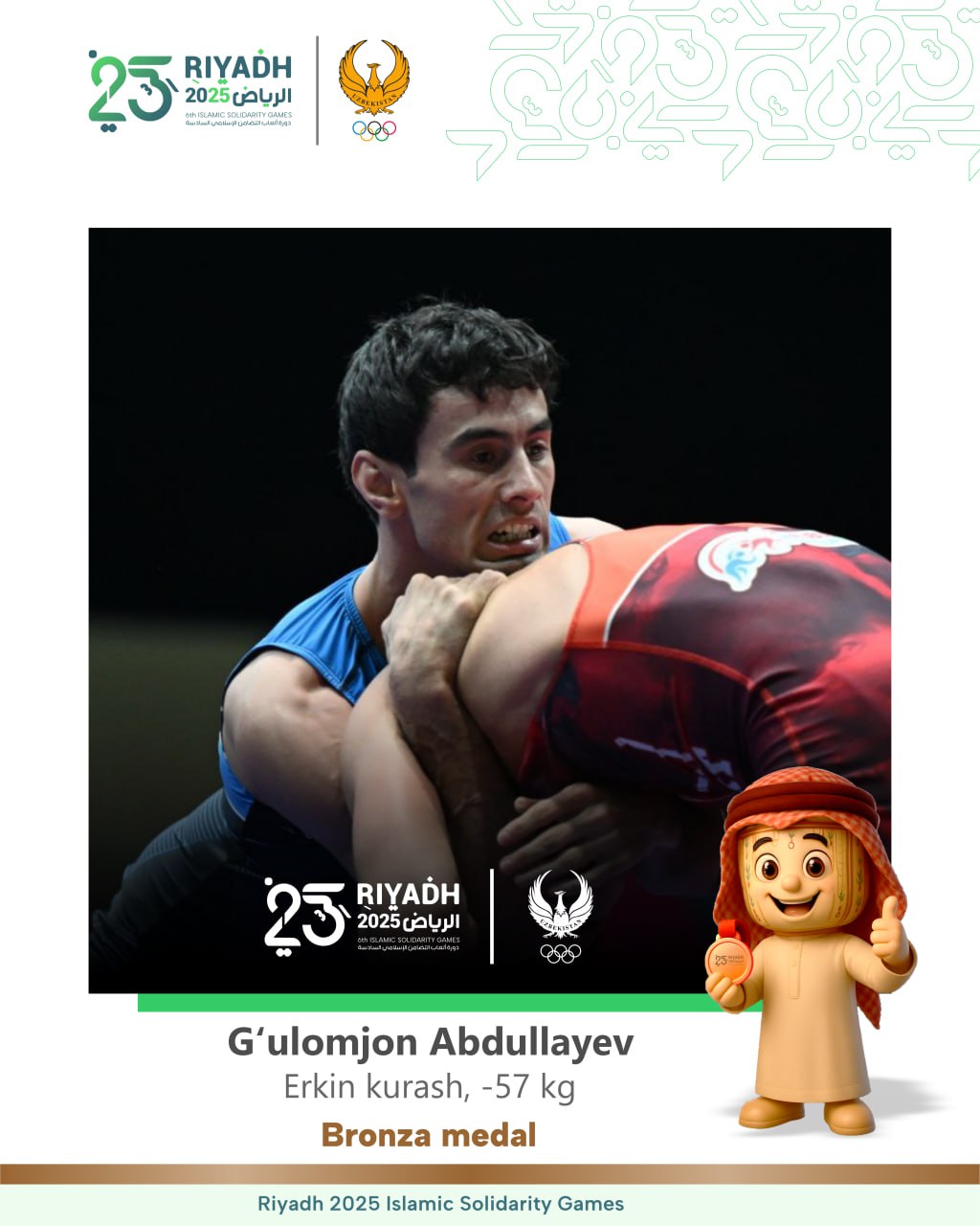 Erkin kurash boʻyicha Oʻzbekiston terma jamoasi aʼzosi Gʻulomjon Abdullayev Islom birdamligi oʻyinla…