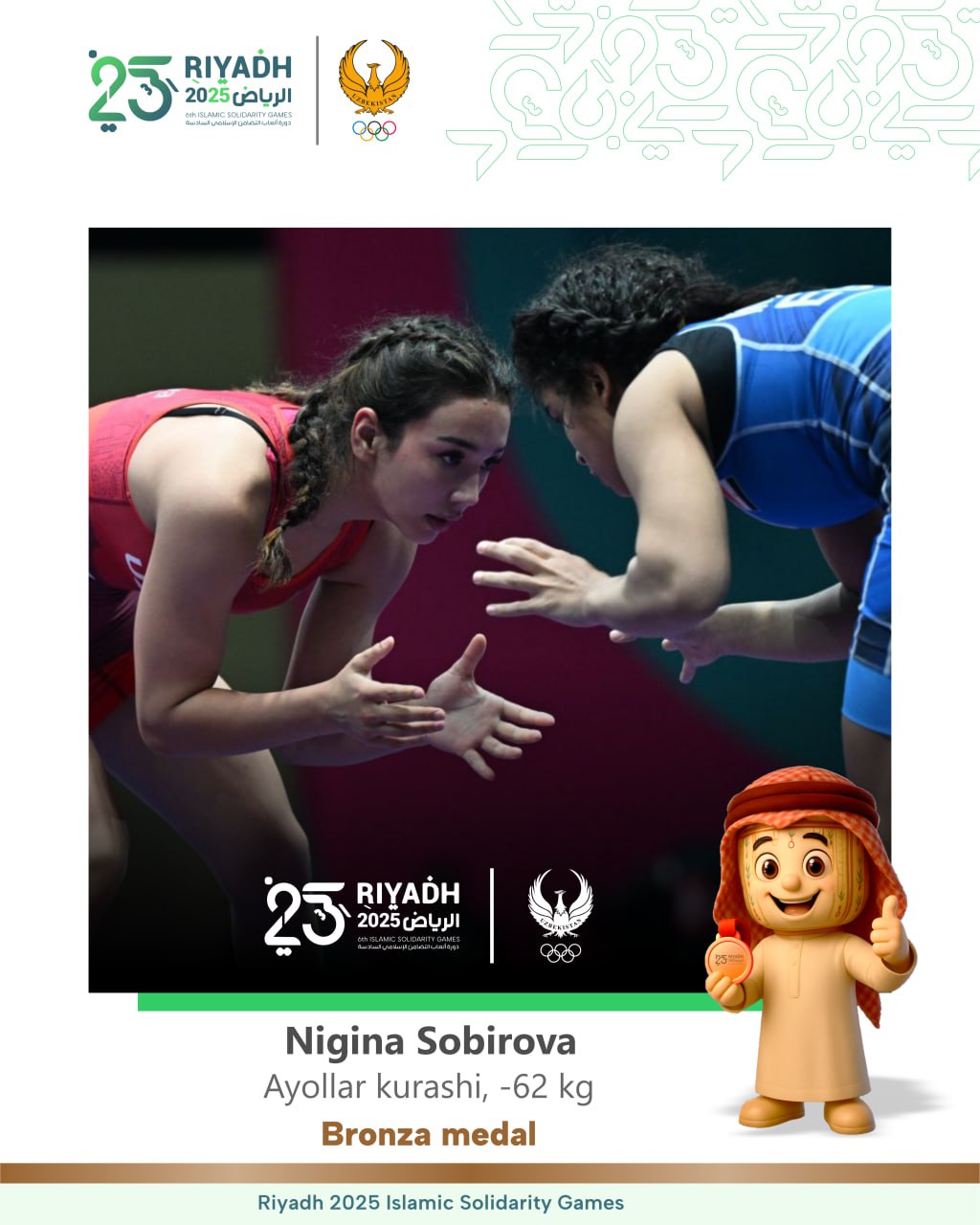 Ayollar kurashi bahslarida navbatdagi medal qoʻlga kiritildi. -62 kg vazn toifasida ishtirok etgan N…