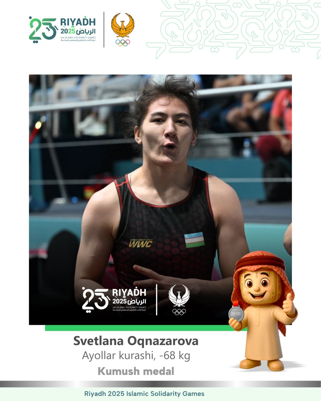 Mahoratli kurashchilarimizdan biri Svetlana Oqnazarova ham joriy Islom birdamligi oʻyinlarining sovr…