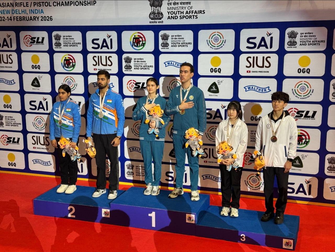 Hindistonda oʻtayotgan oʻq otish sporti boʻyicha Osiyo chempionatidan yana bir xushxabar. Pnevmatik toʻpponchadan 10 metrdan otish boʻyicha kechgan miskt dasturida hamyurtlarimiz Muhammad Kamalov va Nigina Saidqulova oltin medalga sazovor boʻlishdi.
