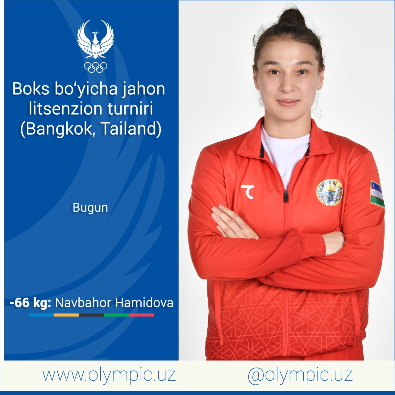 Boks boʻyicha Oʻzbekiston ayollar terma jamoasi aʼzosi Navbahor Hamidova bugun Tailandda oʻtayotgan ...