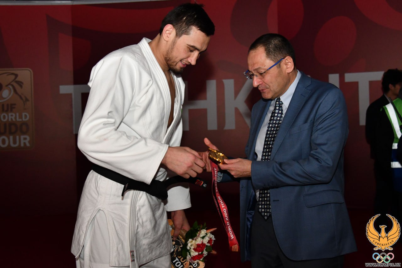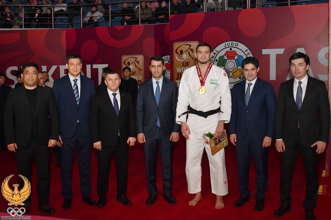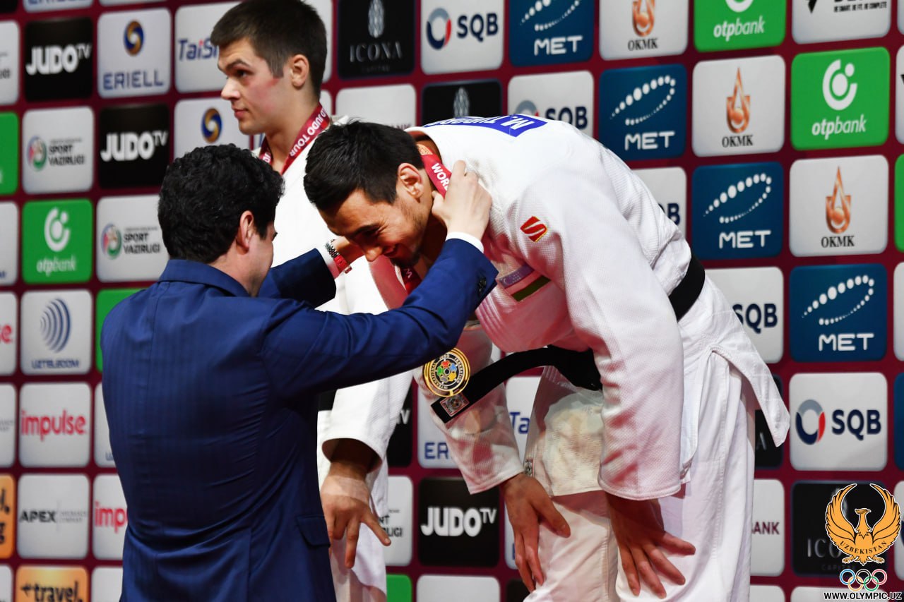Сегодня был один из важных дней в карьере Музаффарбека Турабоева. Талантливый спортсмен впервые завоевал золотую медаль в соревнованиях категории “Большого шлема”, покорив ещё одну вершину. Награду и памятные призы вручили ему первый заместитель председателя НОК Узбекистана Равшан Ирматов и заместитель председателя НОК, глава Федерации дзюдо страны Азизжон Камилов.