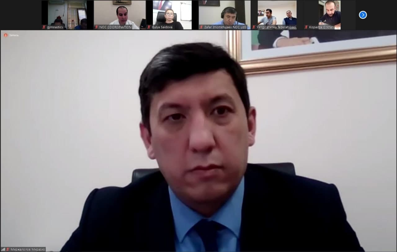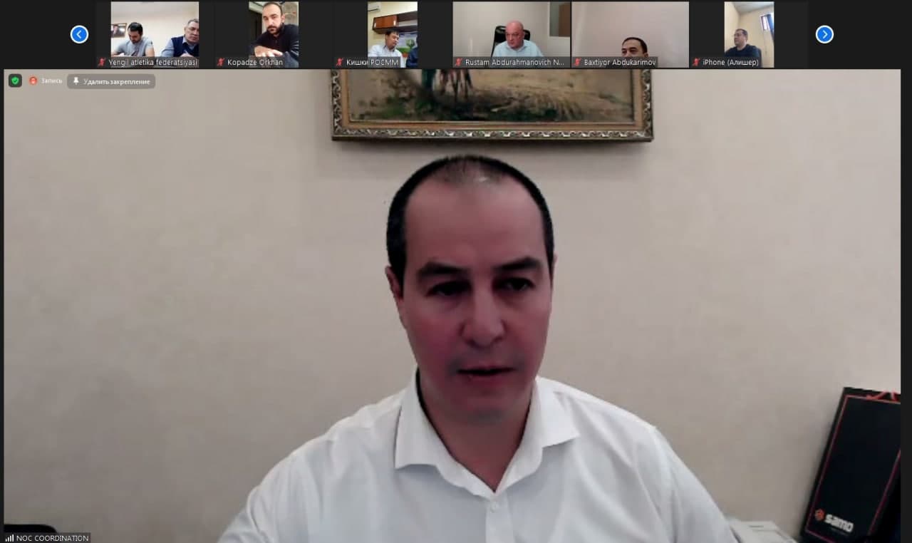 Под председательством главы НОК Рустама Шаабдурахмонова состоялось онлайн-совещание на платформе ZOOM по работе, проводимой в этой системе. В нём приняли участие руководство Министерства Туризма и спорта, Национального Олимпийского комитета, Министерства финансов, спортивных Федераций и Ассоциаций, Республиканских школ высшего спортивного мастерства. На заседании был рассмотрен ряд вопросов. В частности, были подробно обсуждены цели и задачи подготовки к предстоящим Азиатским играм в Ханчжоу и Олимпийским играм Париж-2024, а также обеспечение прозрачности работы, проводимой в системе “UzASBO”.