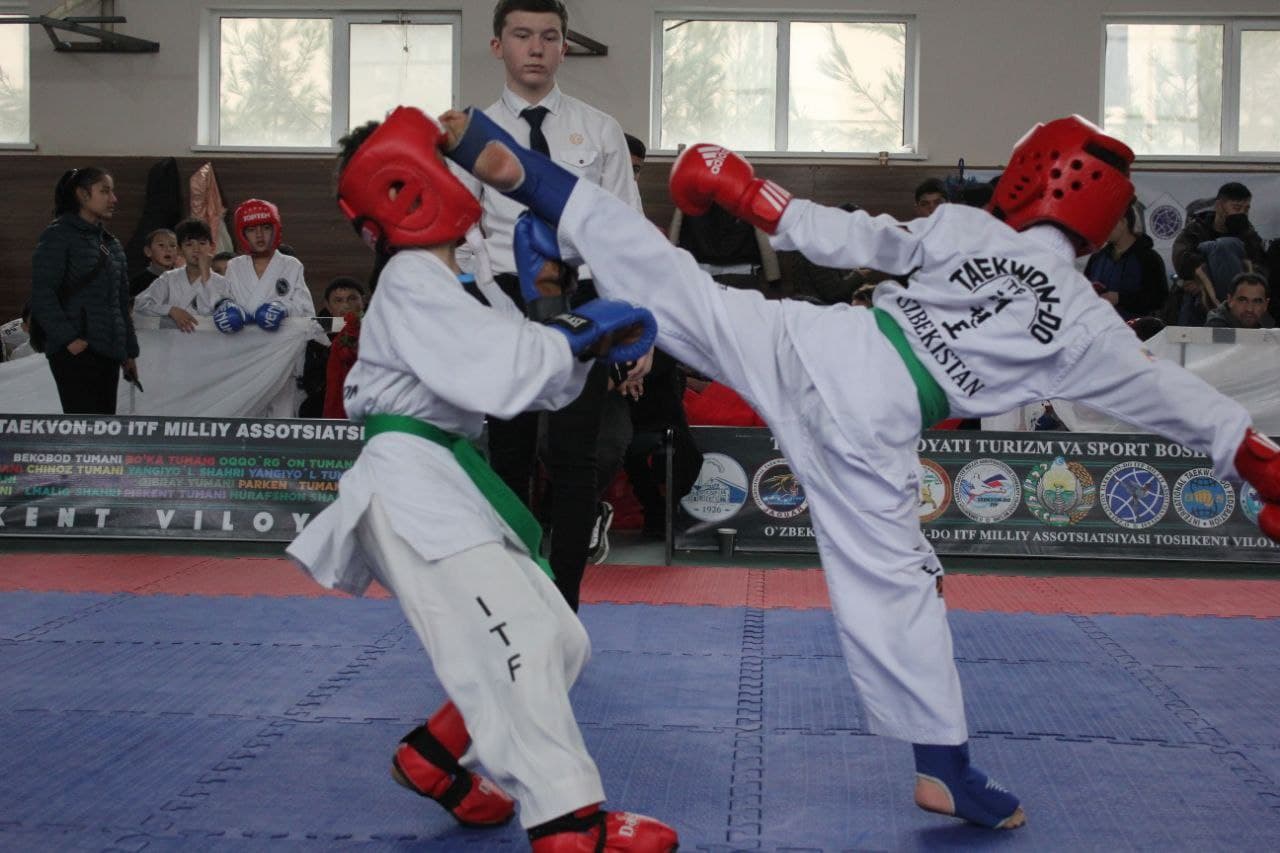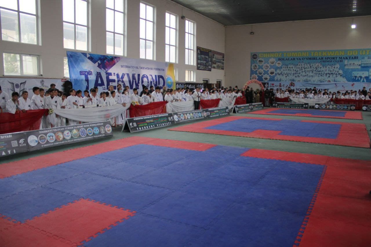 В детско-юношеской спортивной школе Чиназского района прошли открытые отборочные соревнования на чемпионат Ташкентской области и первенства Узбекистана в массоги и индивидуальных плединках среди юношей и девушек по таэквондо ITF.